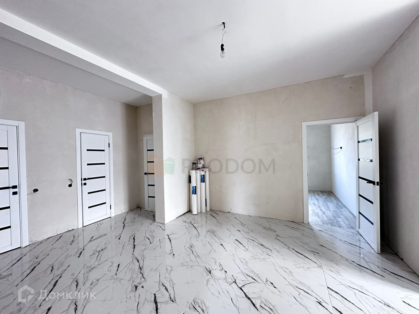 натяжные потолки, точечные светильники, керамогранит, межкомнатные двери, входная дверь с терморазрывом. Дополнительно: