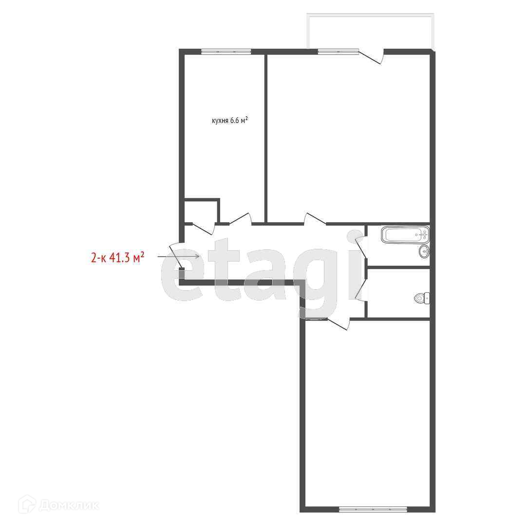 Общая площадь 41.3 м2