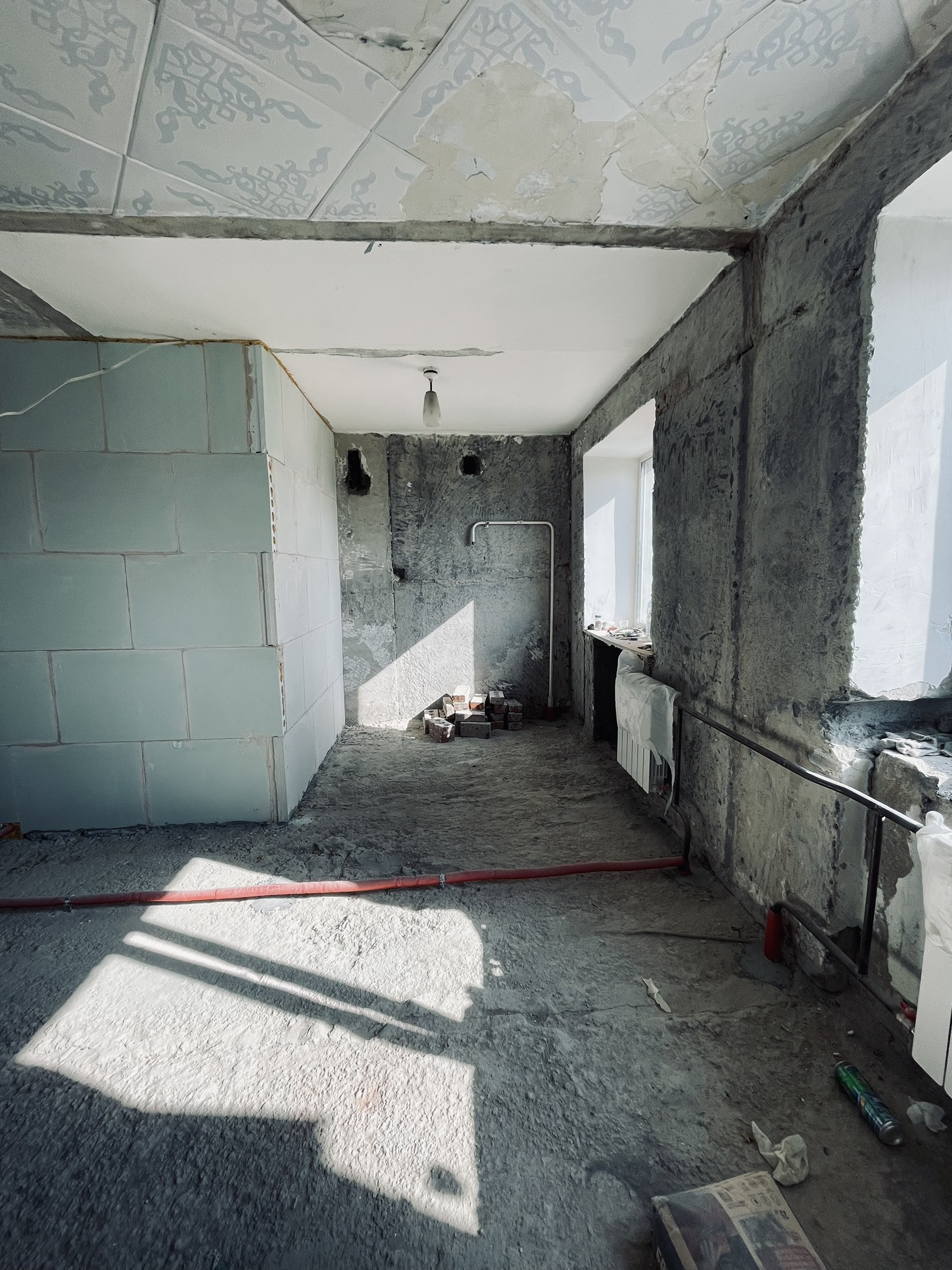 Квартира находится в черновой стадии ремонта, торг уместен.