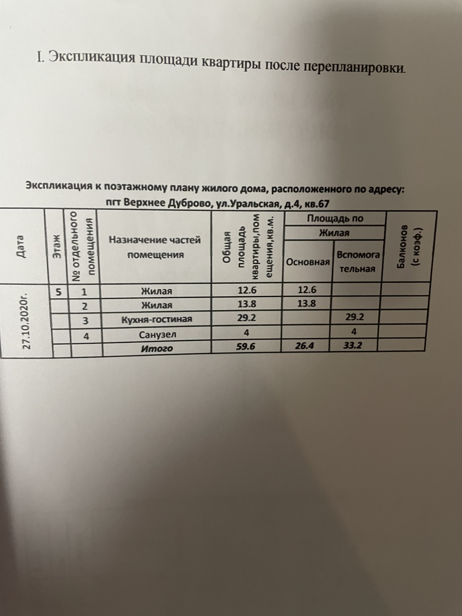 Общая площадь квартиры 59,6 кВ.м.