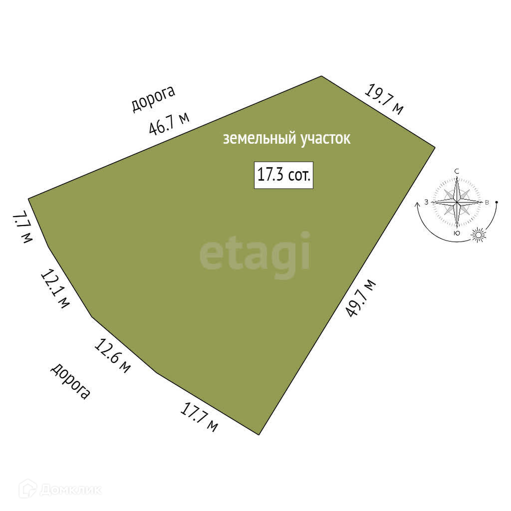 Площадь участка 17.3 сот.