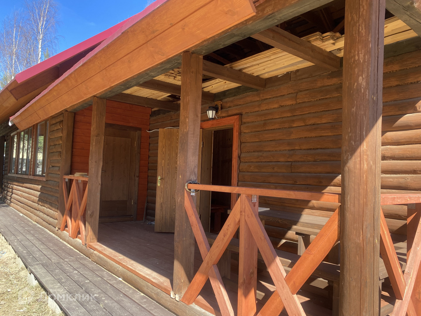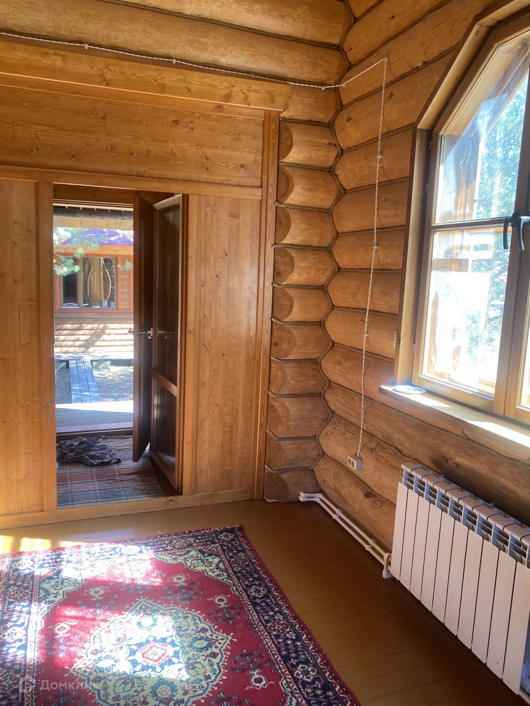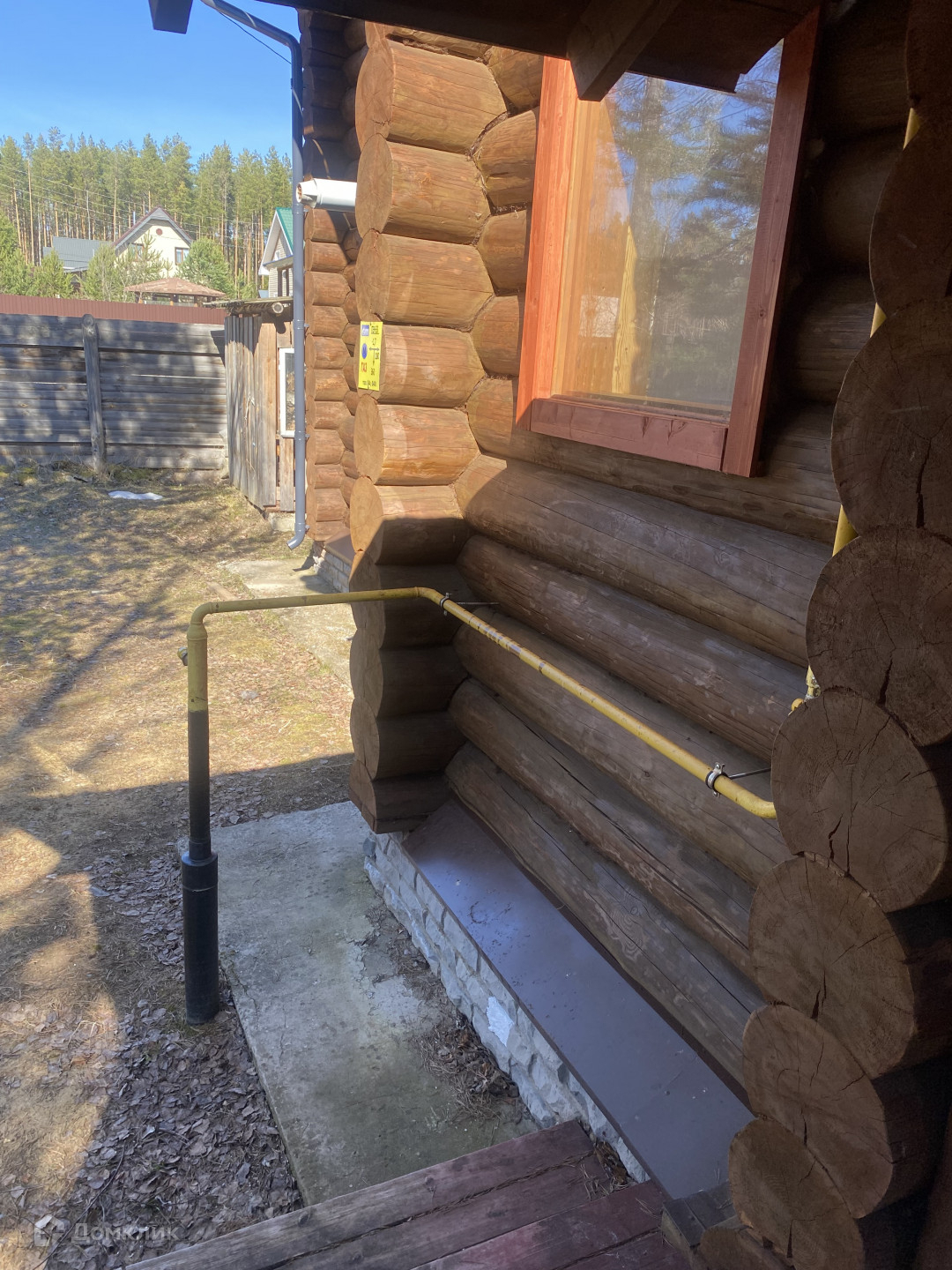 Арт. 13418344 На участке 15 соток, расположен Дом основной 100кв.м. в Русском стиле из бревна 32-го диаметра  и баня с летним домом. Фундаменты ленточные. В дом заведены коммуникации, вода колодец с эл.насосом, канализация септик, электричество центральное, центральный газ. Баня с летним домом 120кв.м.