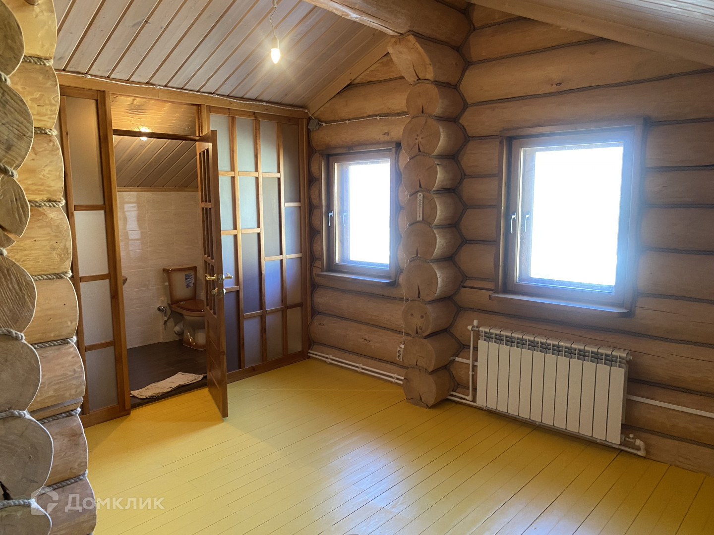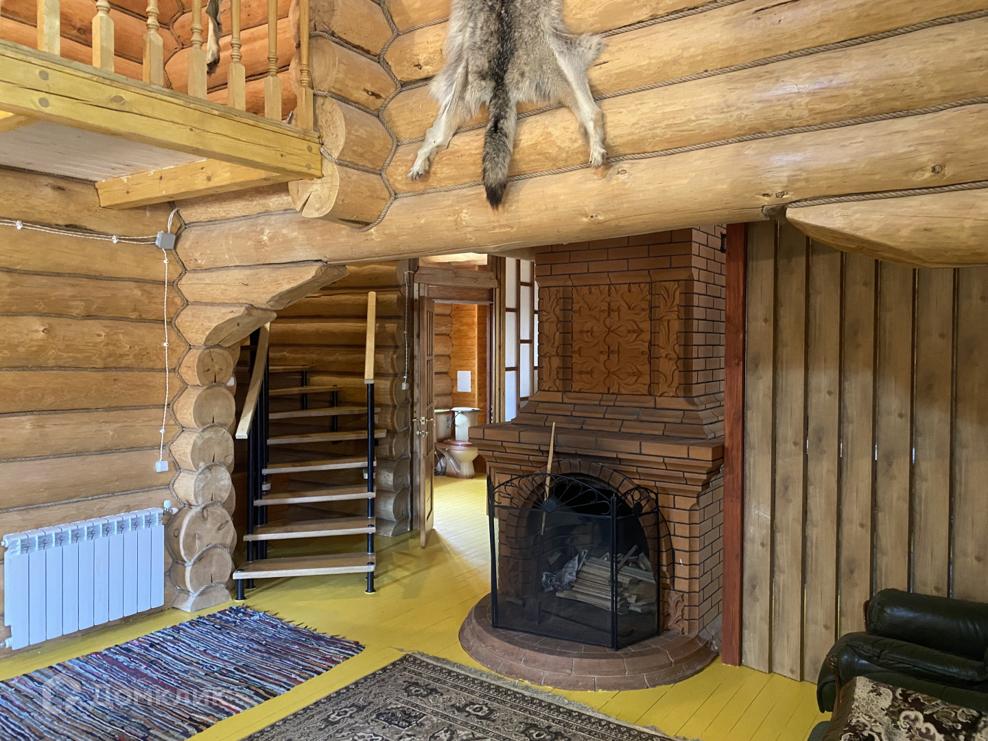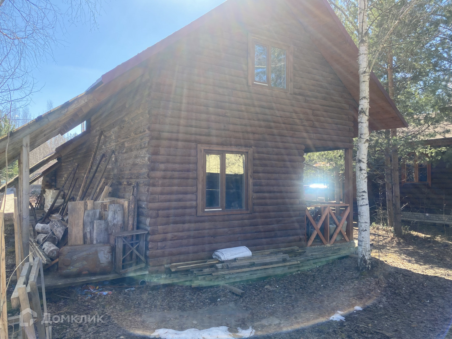 Арт. 13418344 На участке 15 соток, расположен Дом основной 100кв.м. в Русском стиле из бревна 32-го диаметра  и баня с летним домом. Фундаменты ленточные. В дом заведены коммуникации, вода колодец с эл.насосом, канализация септик, электричество центральное, центральный газ. Баня с летним домом 120кв.м.