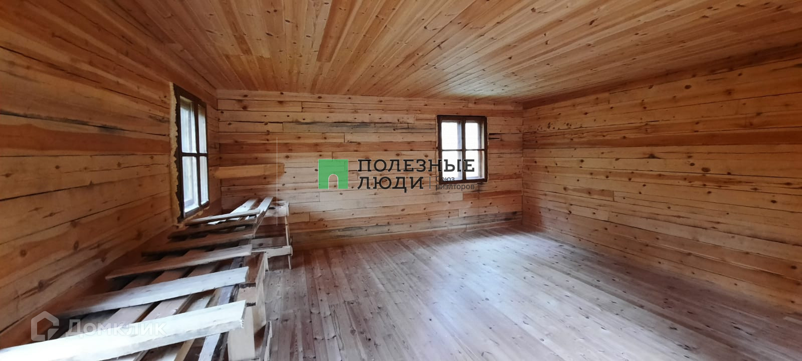 Дом из бруса, установлены окна, крыша покрыта профнастилом. На участке есть фундамент 200 кв.м. на сваях под постройку капитального дома.