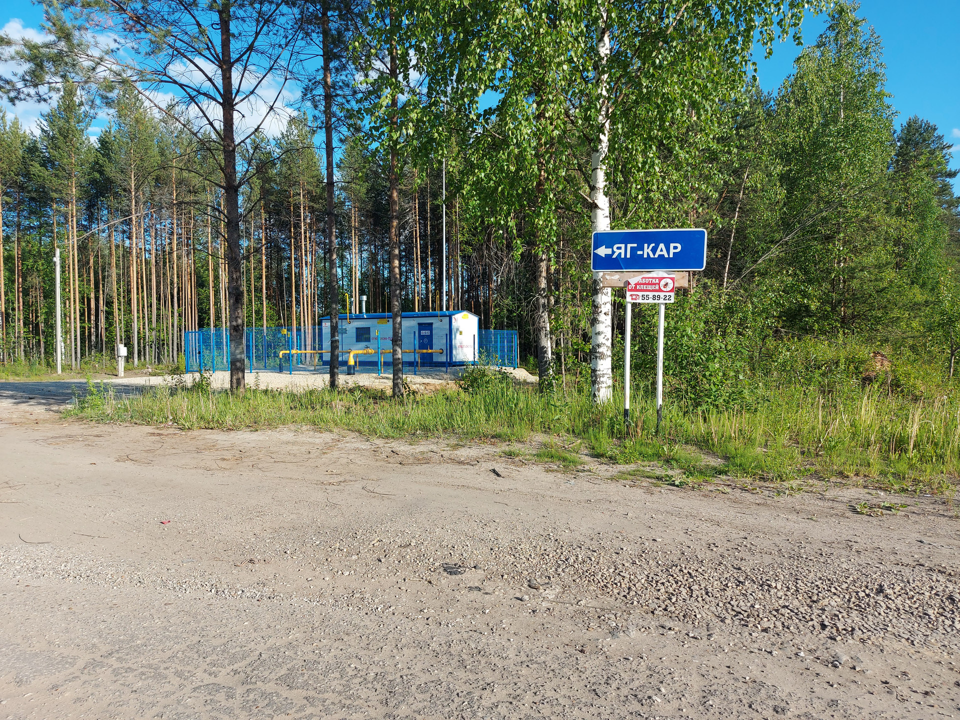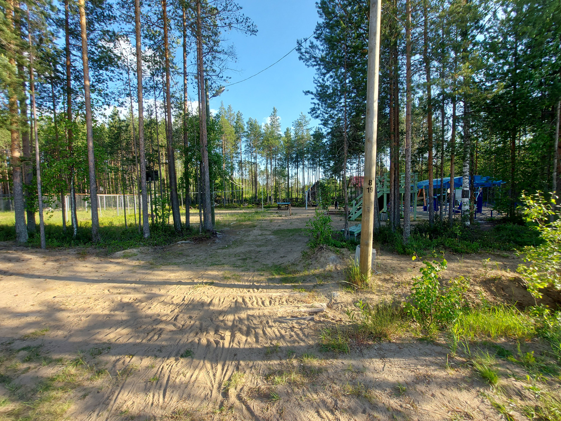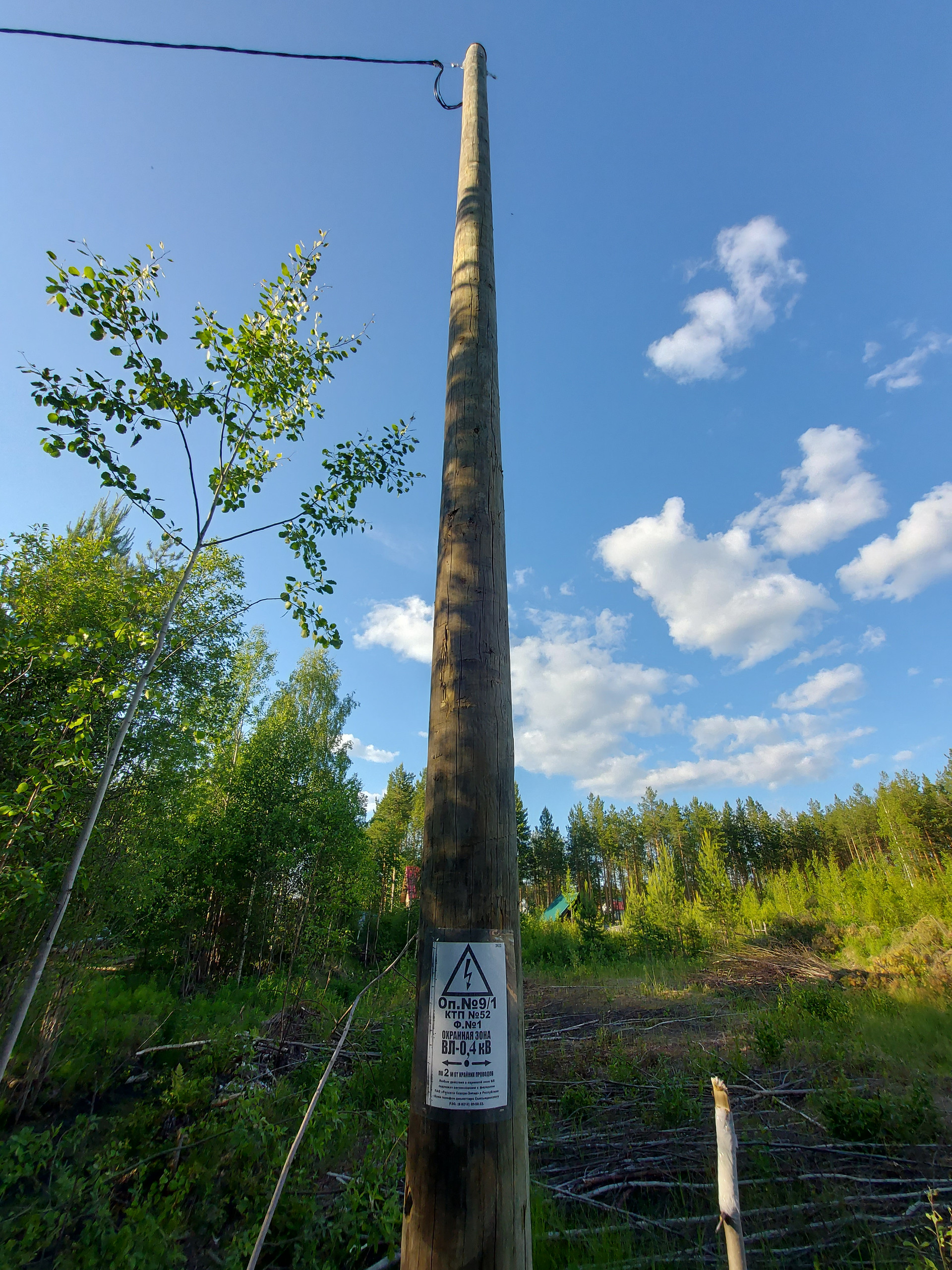 Электрический столб на участке, газ проходит по границе участка.