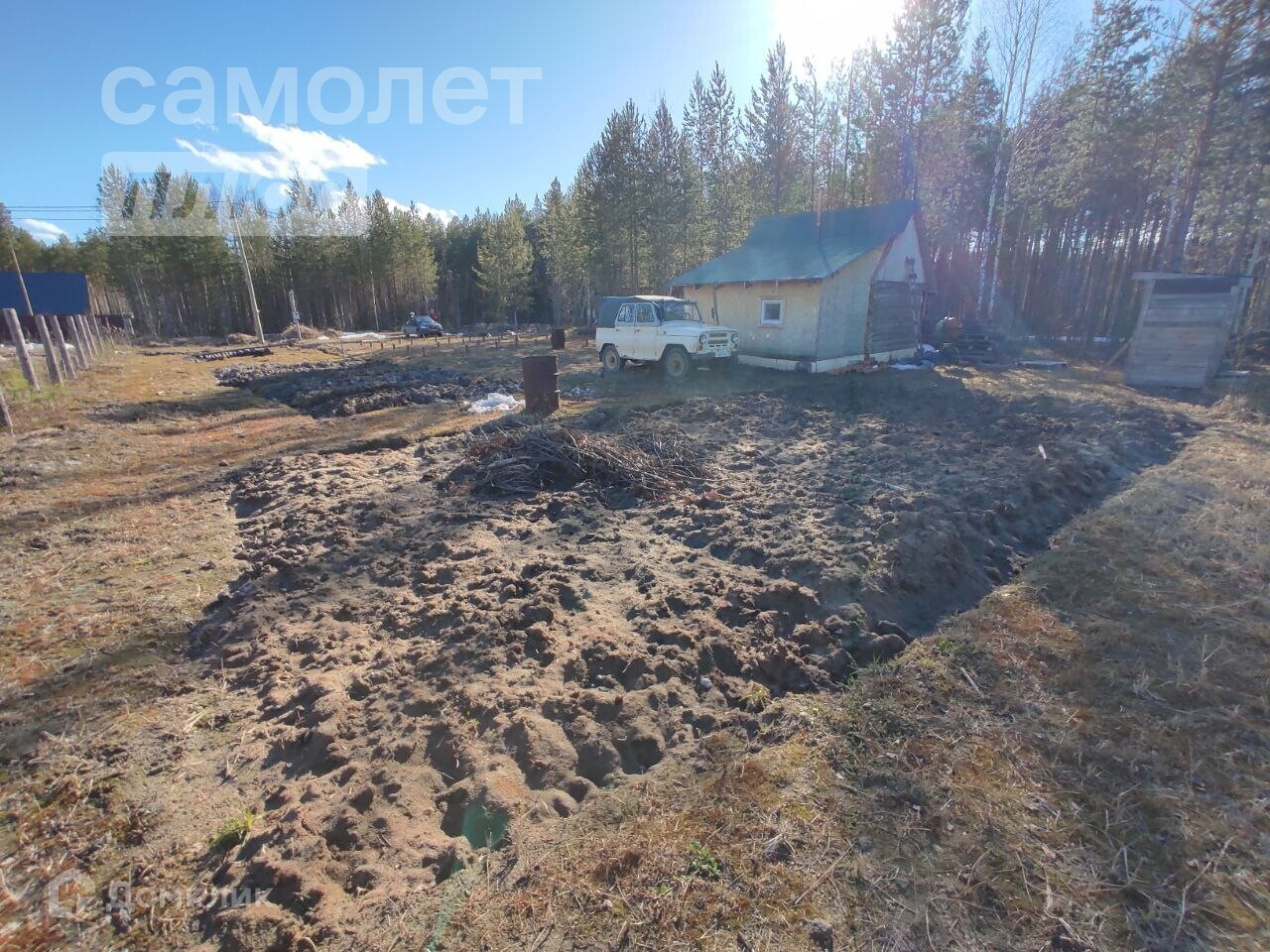 Участок сухой, раскорчеванный, есть заезд для авто. На земле разбит небольшой огородик с удобренной и легкой как пух землей. Также заведено электричество в баню, а в дом можно подключить со щитка на самом участке!