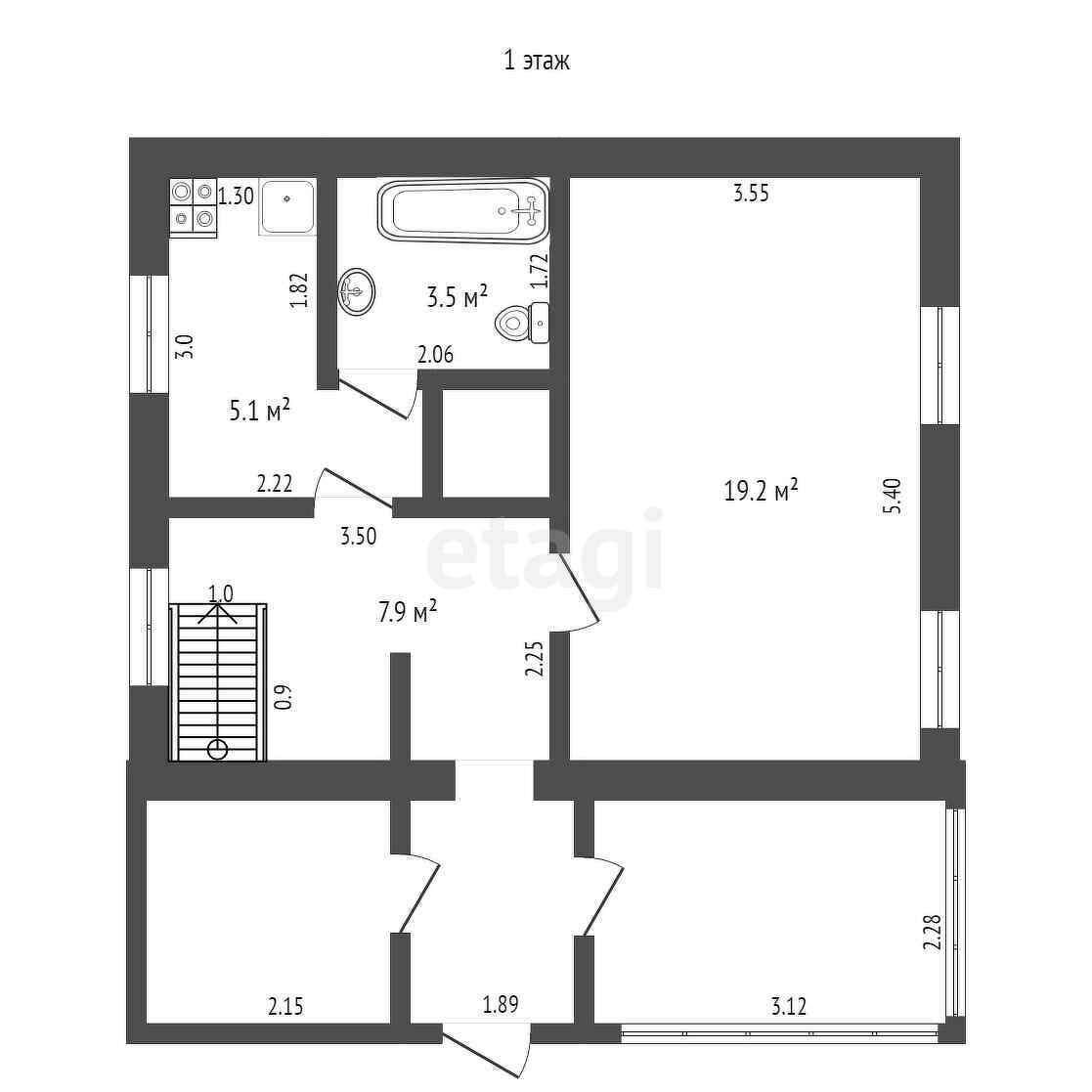 1 этаж(гостиная, санузел совмещ., кухня, коридор), 2 этаж(3 спальни, гардеробная)