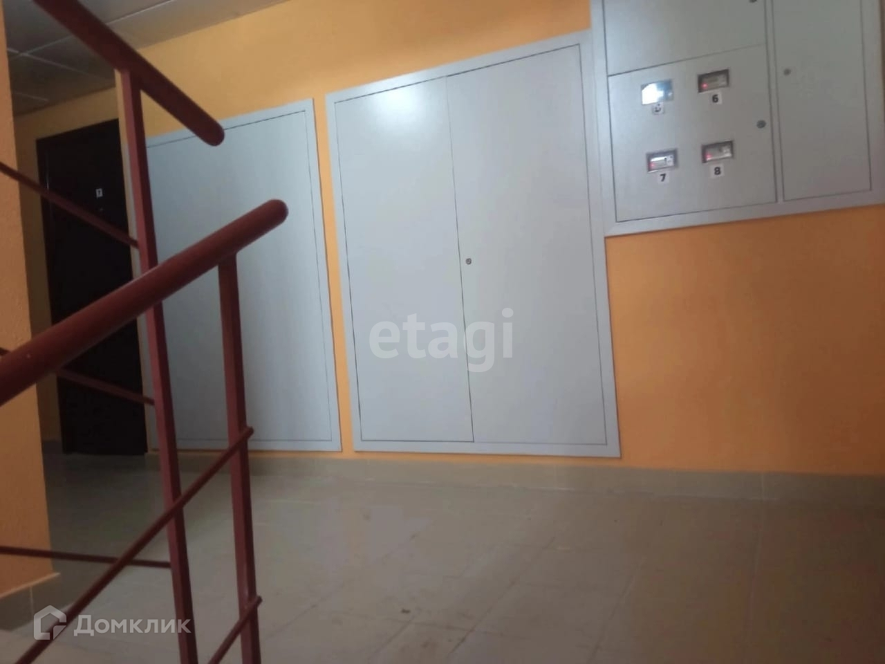 В подьезде установлены большие, стеклянные двери.Установлены счетчики эл.энергии.