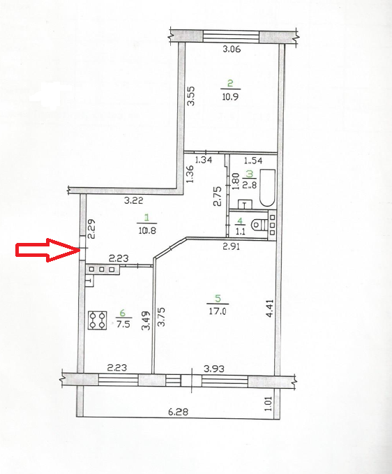 Балкон, лоджия 1 балкон