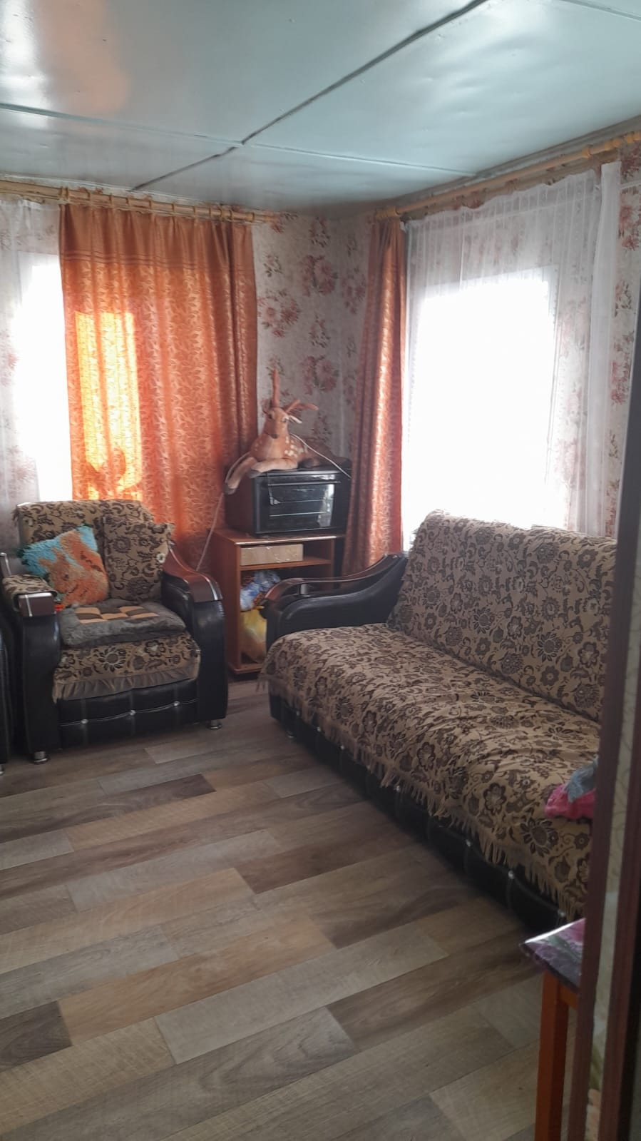 Продаётся дом общей площадью 41 кв.м,но фактически площадь больше, сделана перепланировка. По всему дому пластиковые окна, полы застелены ленолиумом, печь облицовка плиткой,имеется подполье. На участке новый просторный гараж, баня, сарайные постройки, теплица карбонат, летний водопровод. Рядом водобудка. Участок 15 соток, находится в собственности. Остаются дрова и доски, картофель. Имеются насаждения: малина, вишня, слива, смородина, крыжовник, черёмуха, дикая яблонька. Реальным покупателям возможен торг.