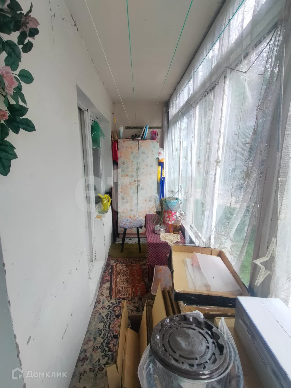 Просторная лоджия с выходом из кухни и спальной комнаты. Лоджия застеклена.
