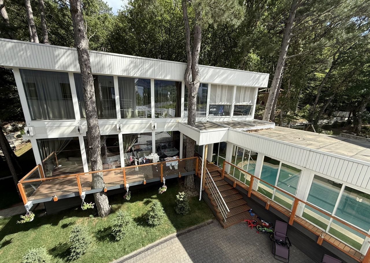 Над домом эксплуатируемая кровля с обзорными видами на море, горы, заповедник.