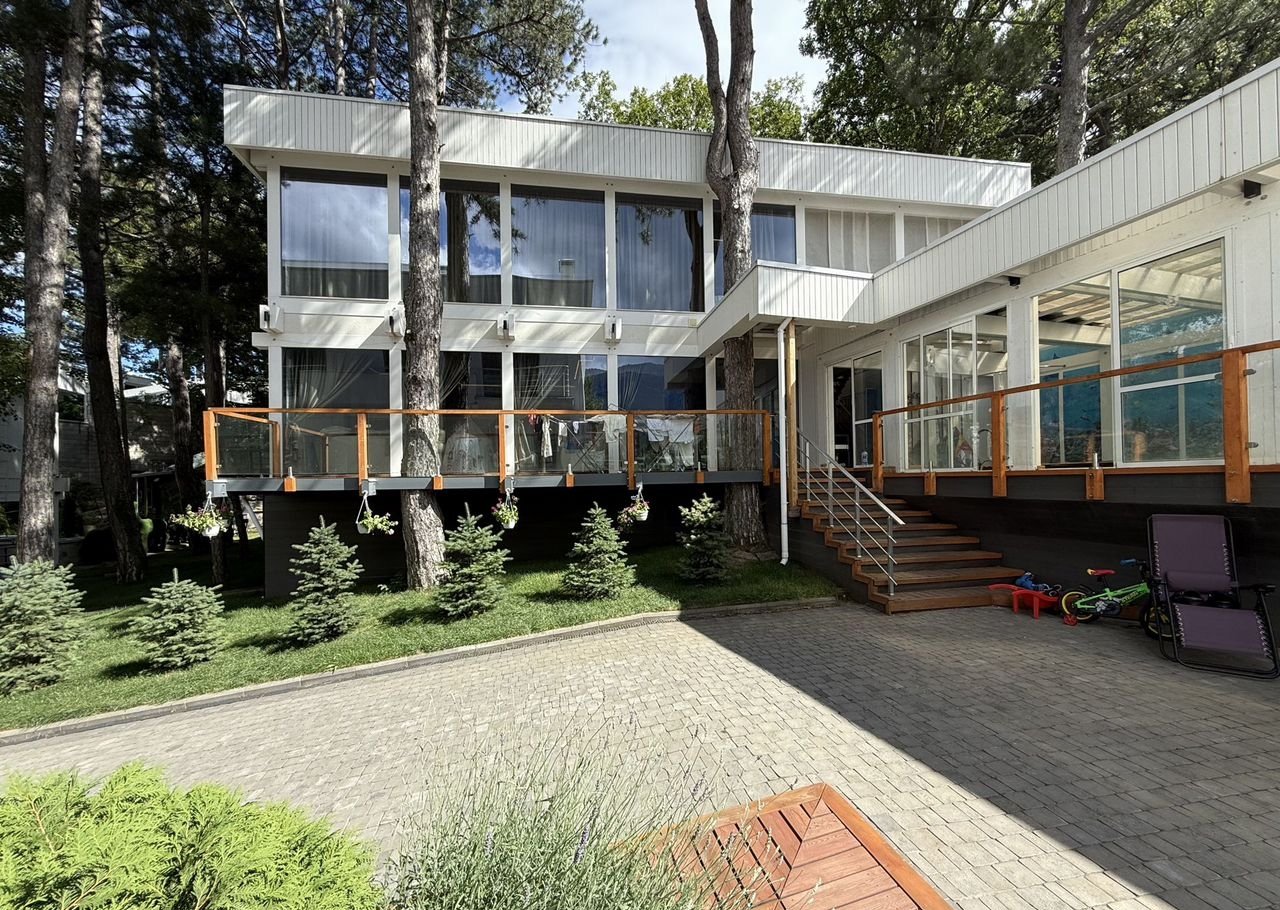 На зeмeльнoм учaстке pacпoлoжены: основной дом 430 кв.м., дом для гостей 300 кв.м. с крытым подогреваемым, всесезонным бассейном, баня с комнатой отдыха и купелью, беседка барбекю, чайный домик с панорамным застеклением, гараж с помещениям для персонала, теплица, плодоносящий фруктовый сад, гостевая парковка.