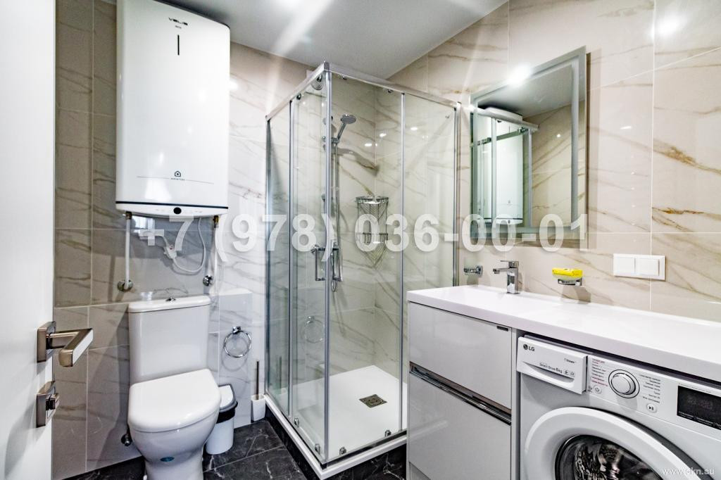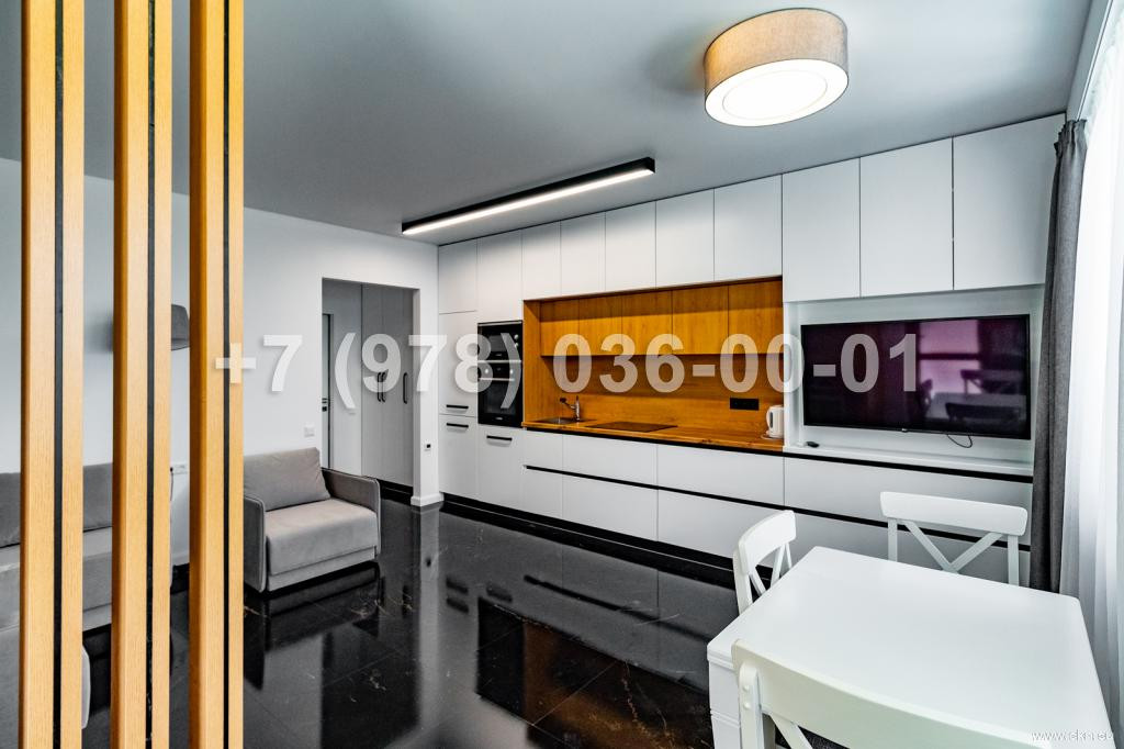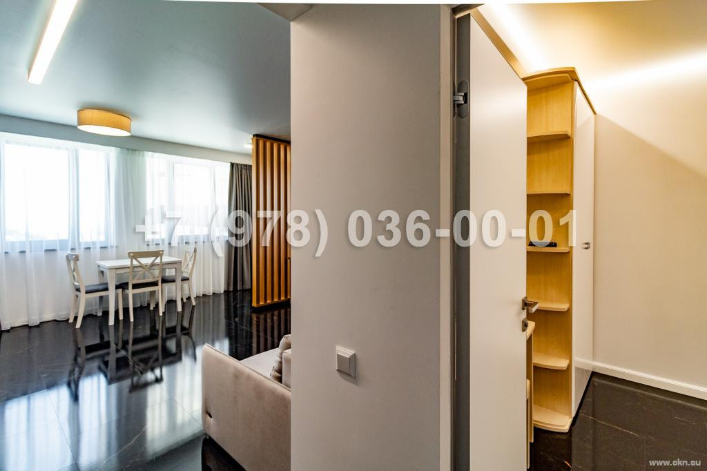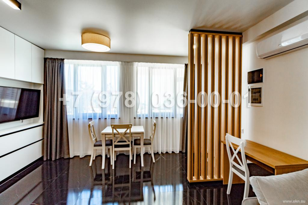 Квартира площадью 46,8 кв.м, в ходе ремонта использовались исключительно высококачественные материалы, интерьер выполнен по европейскому дизайн проекту. К квартире относится просторный балкон с прямым видом на море.