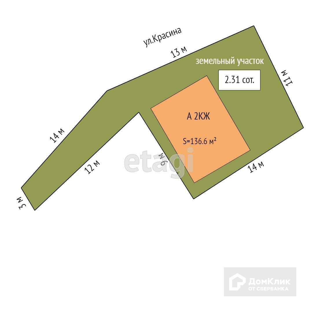 Площадь участка 2.3 сот.