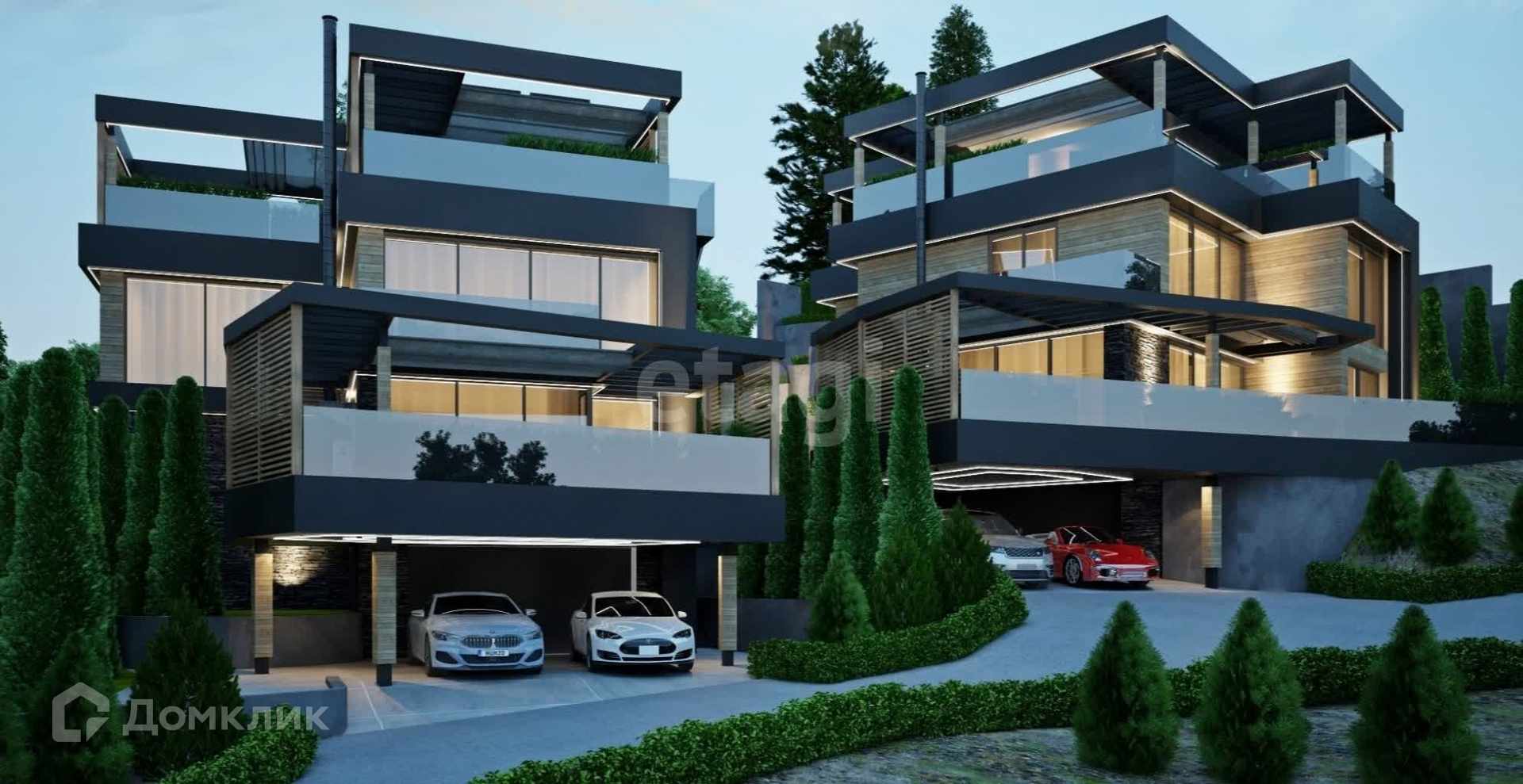 Сейчас дом в стадии строительства. В каждом коттедже будет гараж, котельная, постирочная, коридор, кладовая, серверная. Планировка свободная.