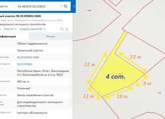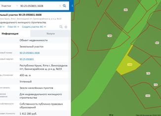 Республика Крым, г Ялта пгт. Виноградное ул. Красина в-районе дома 8. Видовой! 7,5 соток! Целый участок по цене молосемейки в Ялте! |