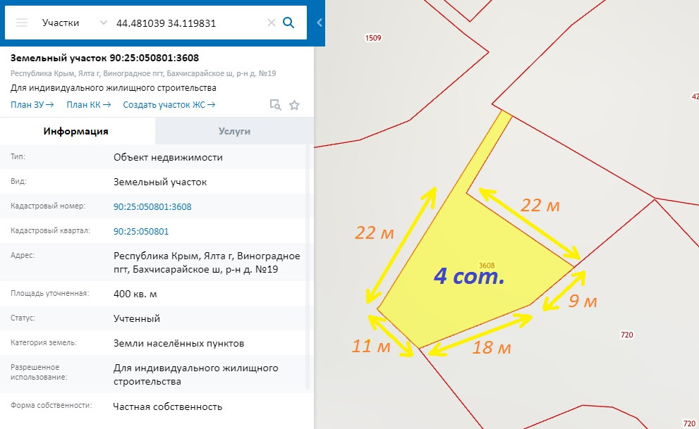 Площадь участка 4 сот.