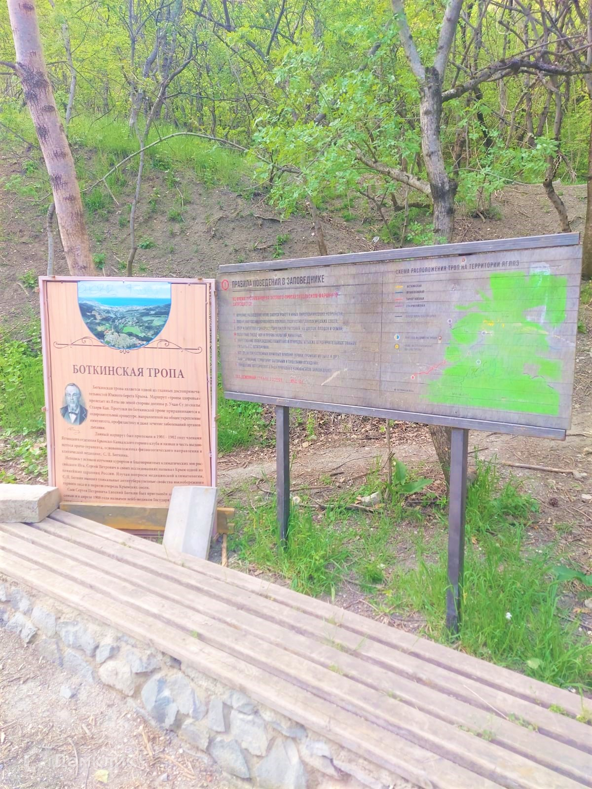 Расположен вдоль Боткинской тропы, в 100 метрах от Ялтинского зоопарка, большой трафик туристов.