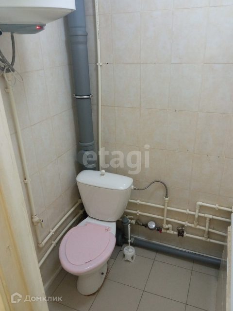 Сан узел совмещен, стены и пол в плитке, так же в сан узле установлен водонагреватель.