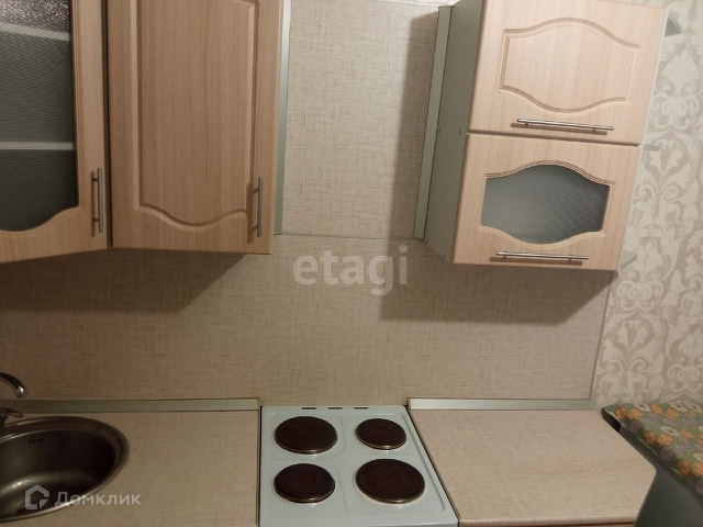 В комнате сделан косметический ремонт, на полу постелен ламинат, установлен хороший кухонный гарнитур.