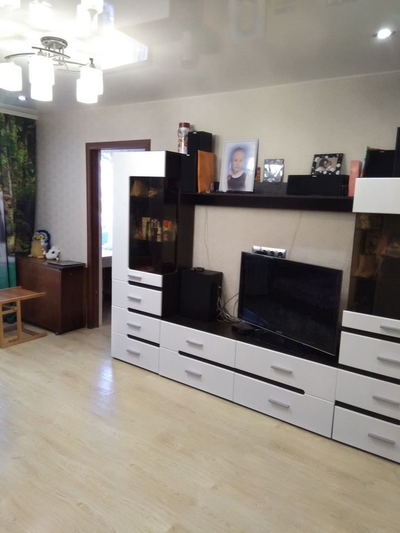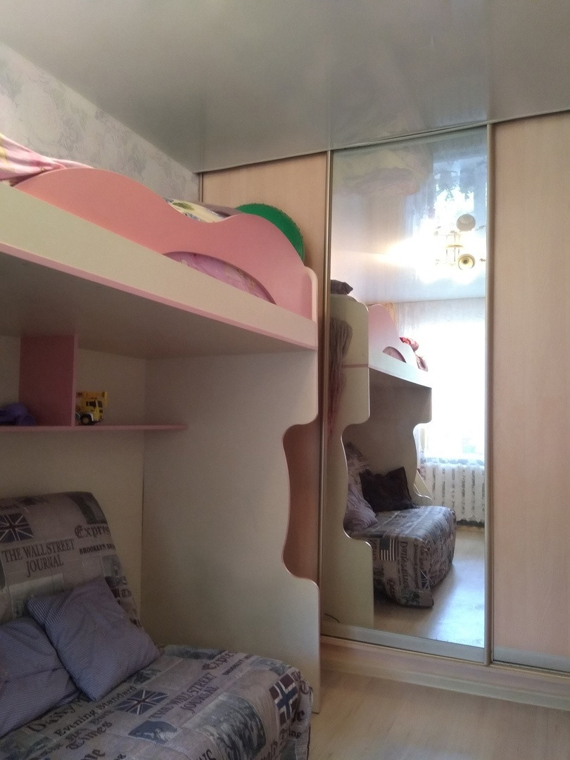 Санузел плитка, заменены все трубы, также заменена проводка. Также в квартире имеется вместительная кладовка. Из мебели остается кухонный гарнитур и встроенный шкаф.