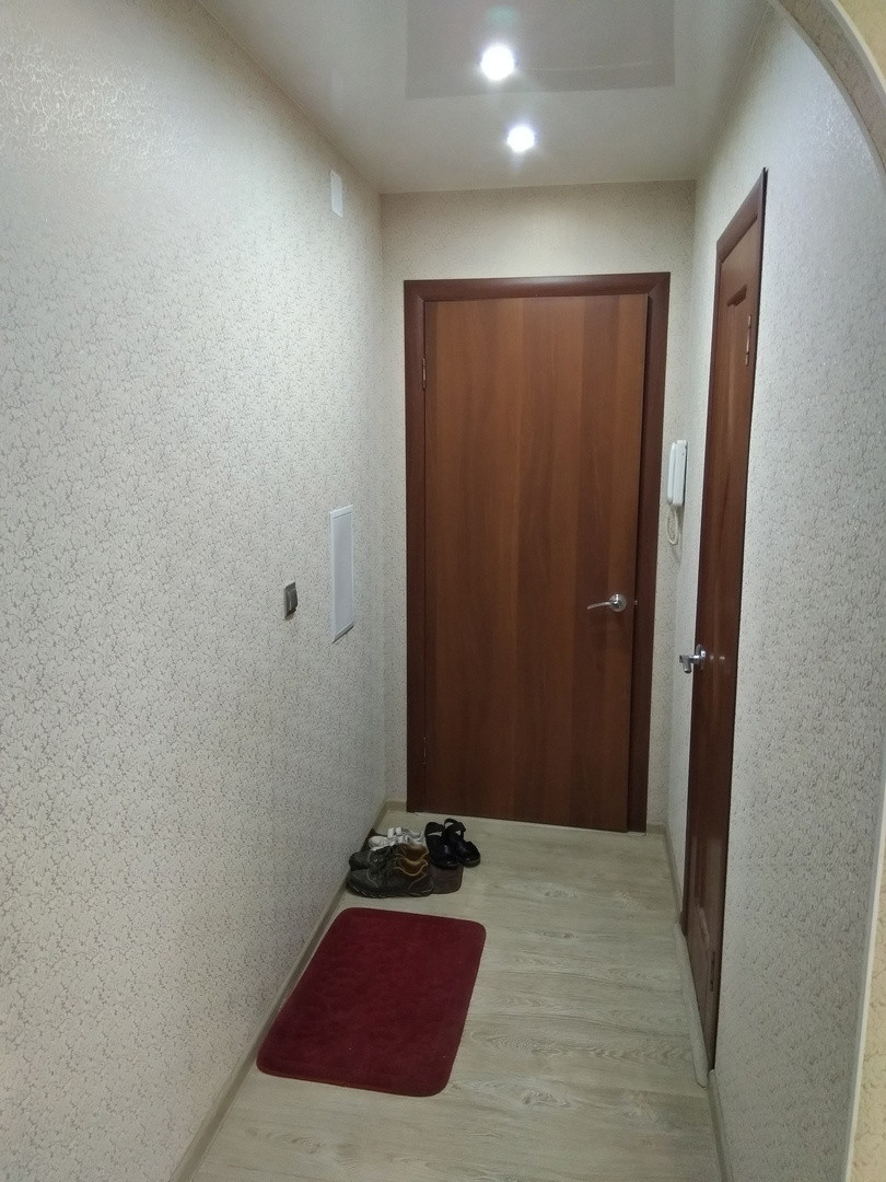 В квартире был сделан капитальный ремонт, выравненные стены, натяжной потолок. Полы утепляли, ламинат. Окна выходят во двор, все заменены на пластик.