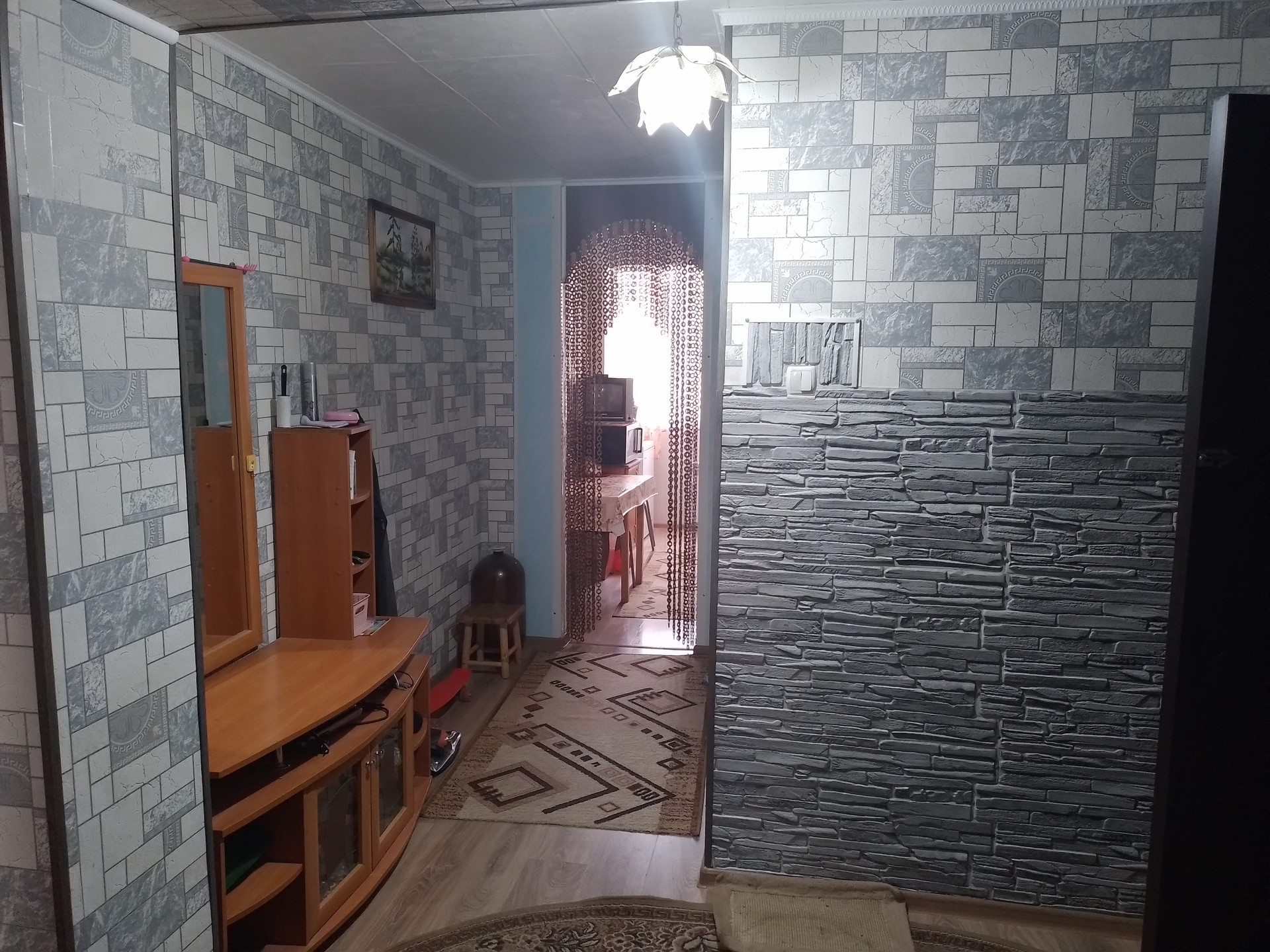 Квартира полностью отремонтирована недавно,газовый котел, кондиционер,инфраструктура в минимальном объеме есть вся, соседи адекватные, автобус+электричка,есть гараж капитальный с погребом 6х6+хоз.пристройка 6х6 кирпич  в 5-ти мин. ходьбы