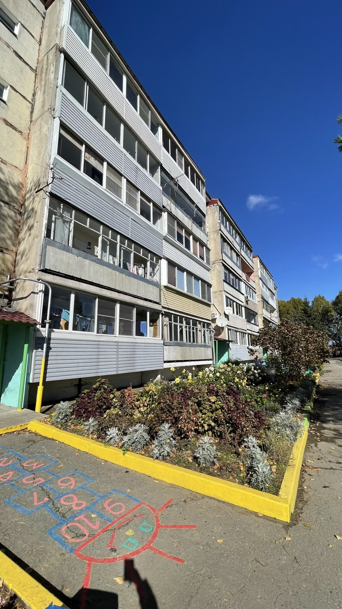 Дом 1984 г. постройки, хороший двор с большой обустроенной детской площадкой, утопающий в зелени деревьев, декоративных кустарников и цветов, ухоженный подъезд, приличные соседи.