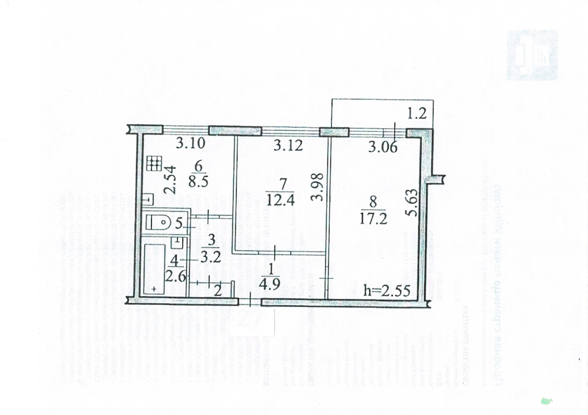 Балкон, лоджия 1 балкон
