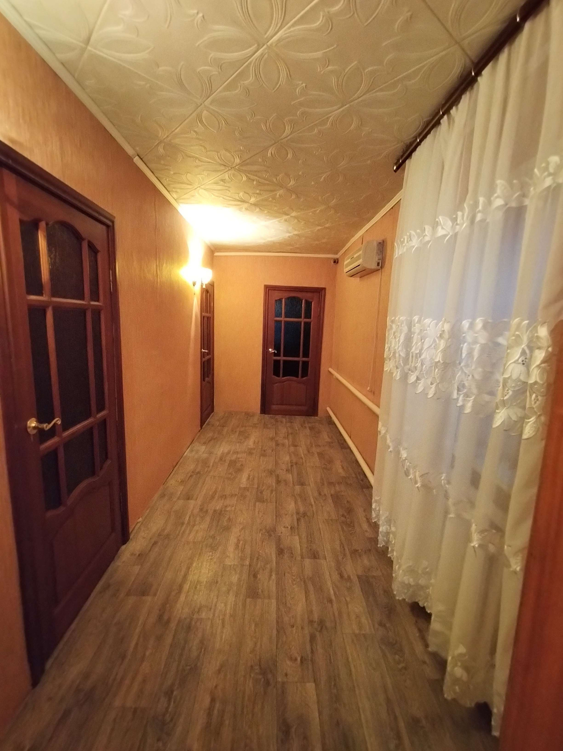 Во дворе имеется баня, туалет, летняя кухня, гараж, теплица, сад огород, растут деревья яблоки, груша, слива, персик, абрикос, виноград, малина и мн.др,в доме есть санузел, кухня, 3 комнаты, остаётся частично мебель, сплит система,заходи и живи!!!
