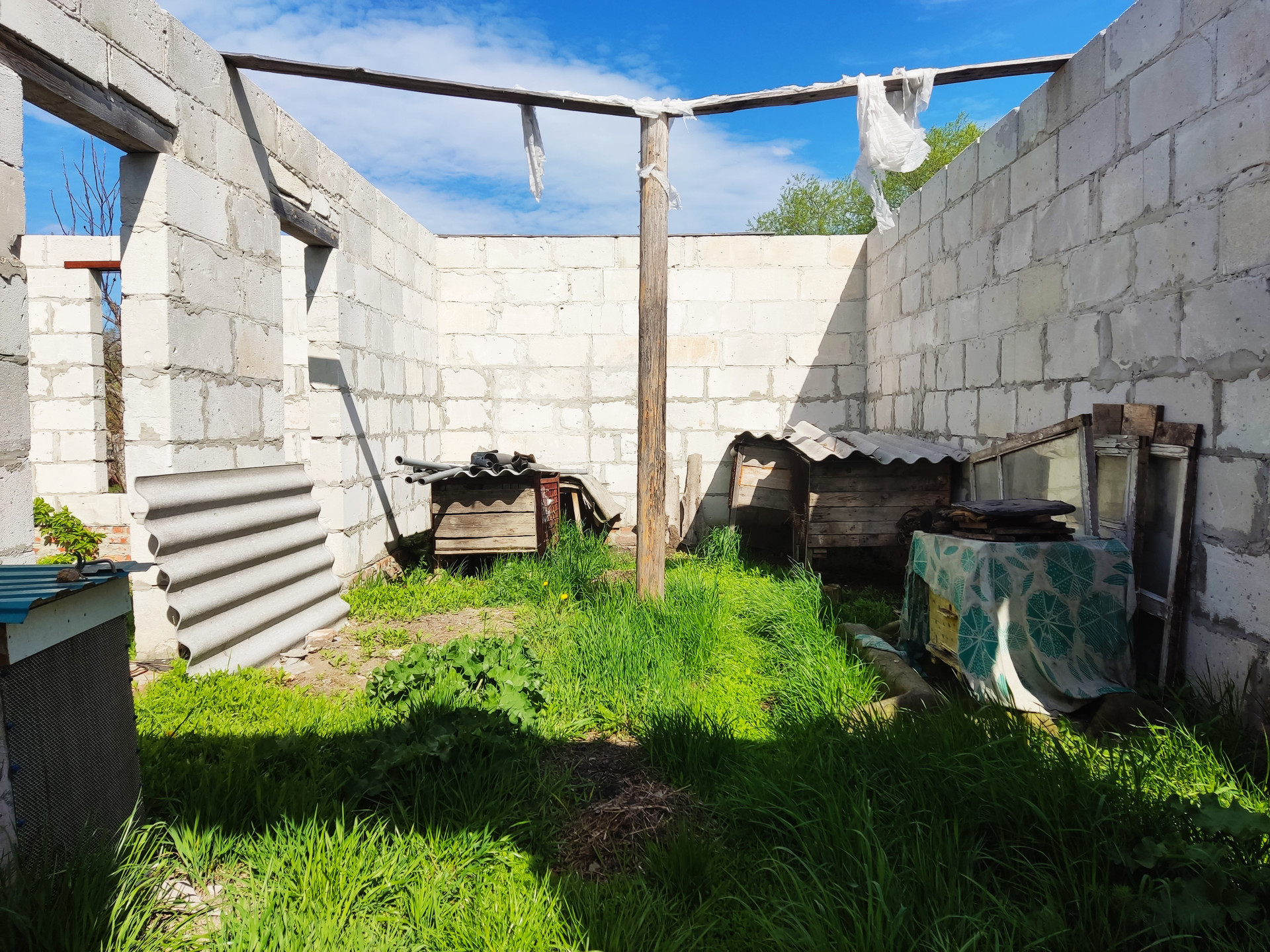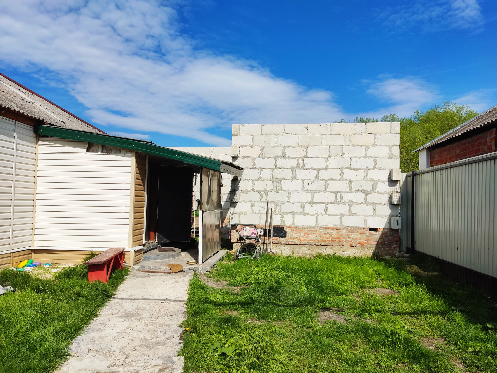 Участок 5 соток, категория - земли населенных пунктов, предоставленных для ведения личного подсобного хозяйства. На участке расположены: сараи, подвал. Начато строительство нового дома, документы оформлены как на объект незавершенного строительства. Объекты в собственности, все документы готовы к продаже.