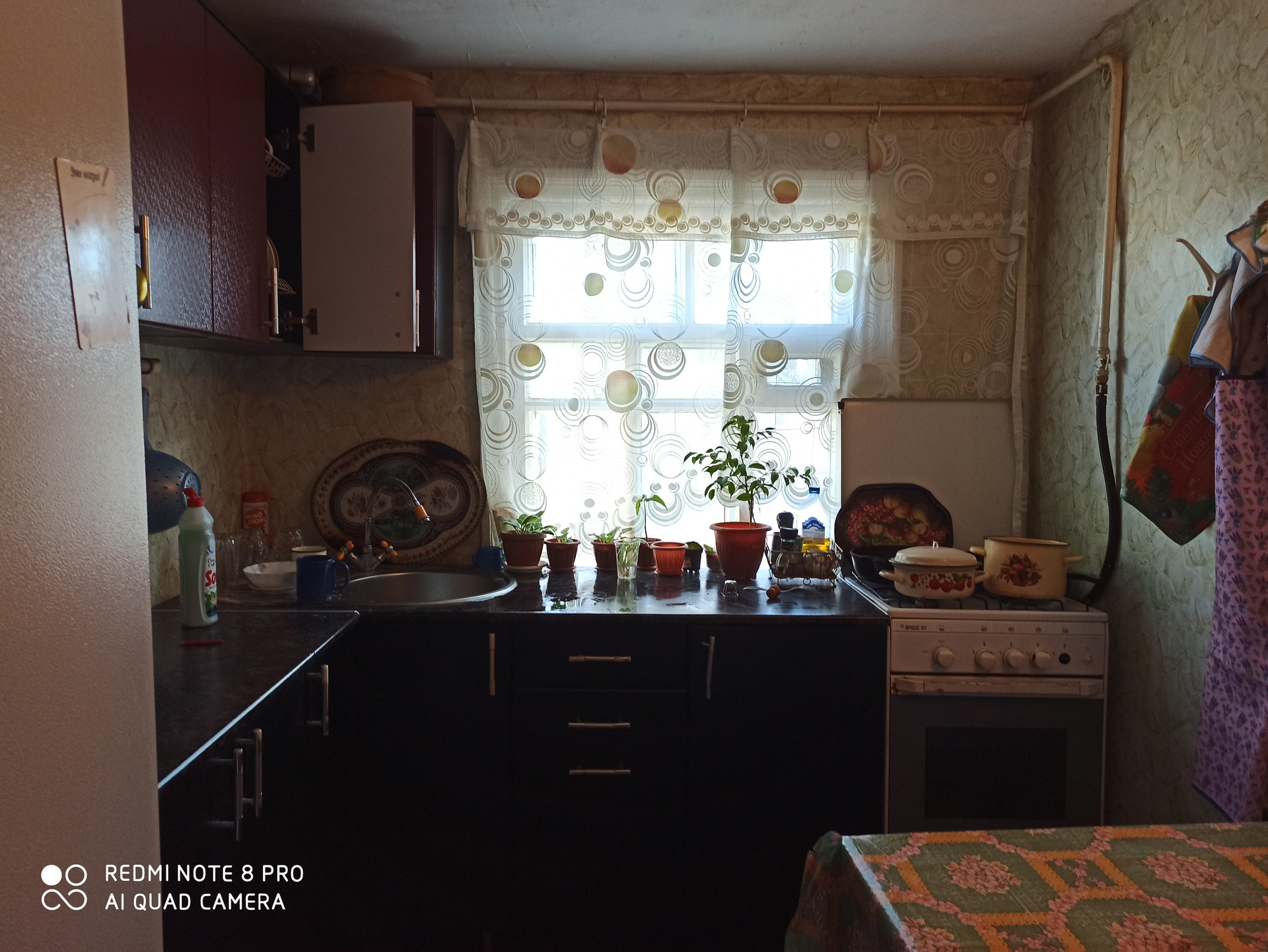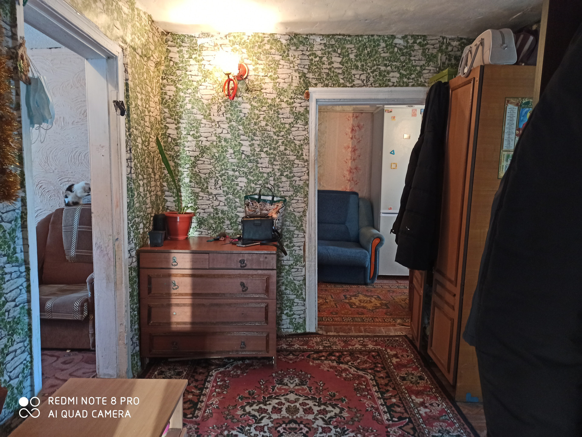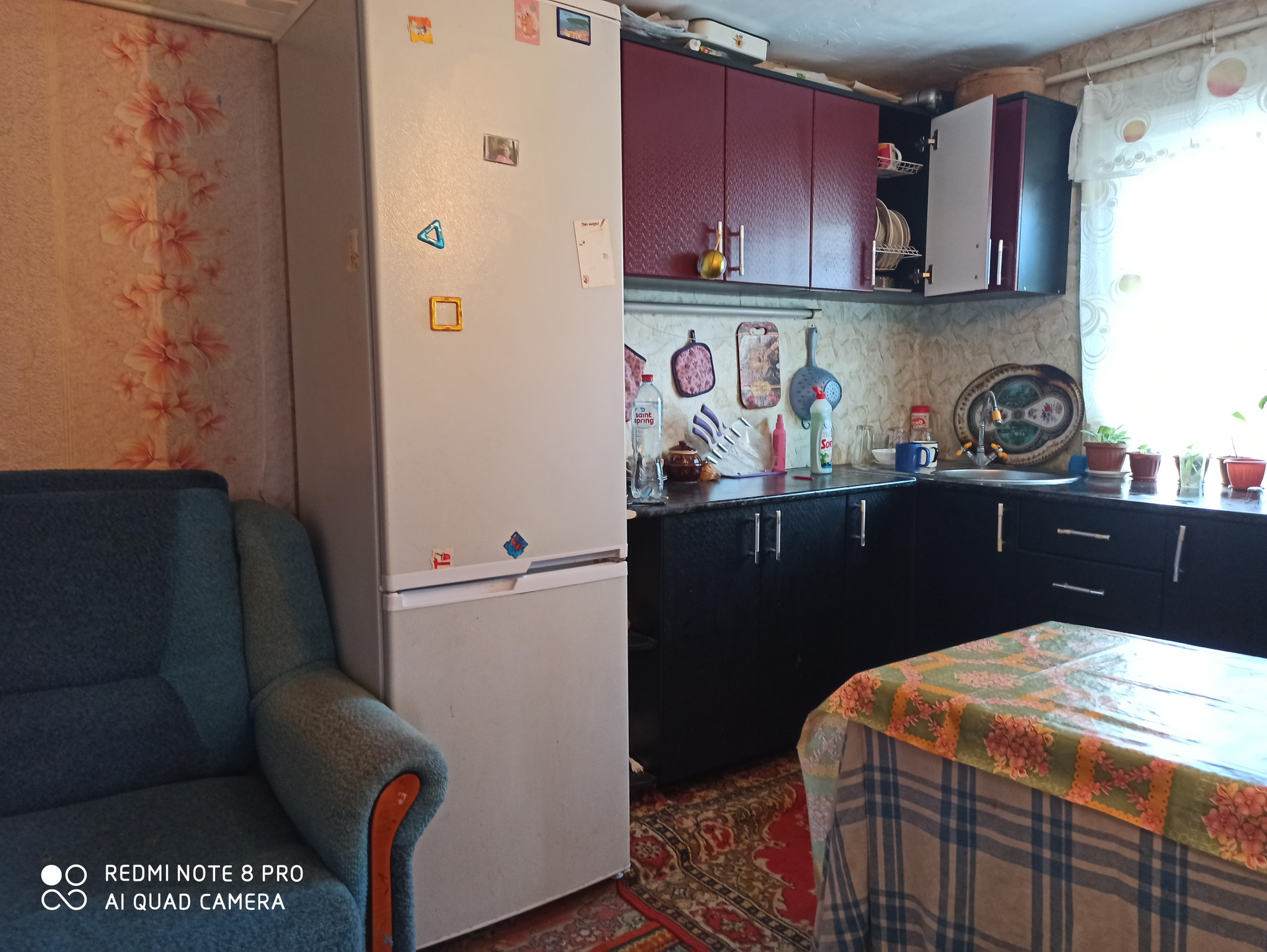 Коммуникации: газифицирован, отопление (форсунка), электричество, вода холодная и горячая (греется водонагревателем).
