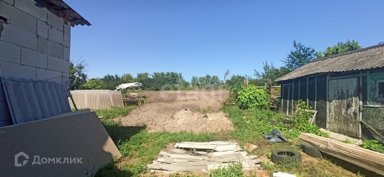 Участок 18 соток ровный, широкий, есть небольшой сарай под хоз. инвентарь, беседка.