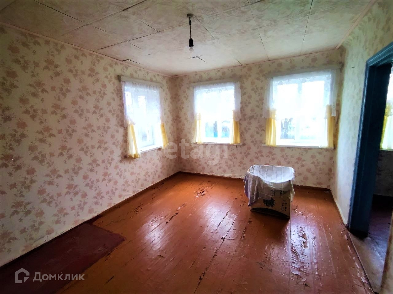 Планировка: три жилые комнаты, кухня, коридор, техническое помещение. Дом требует ремонта.
