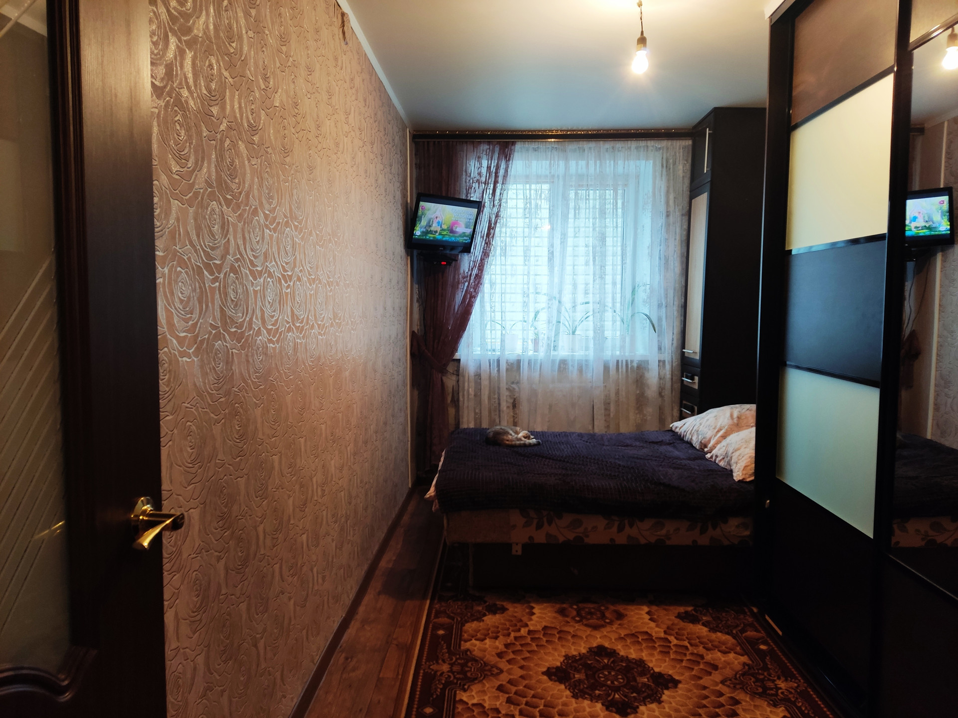 Общей площадью 41 кв. м, расположена на первом этаже двухэтажного дома. Планировка: две (изолированные) комнаты, кухня, раздельный санузел, коридор, прихожая. Ухоженная чистая квартира. Окна ПВХ. Центральное отопление. Состояние заходи и живи!