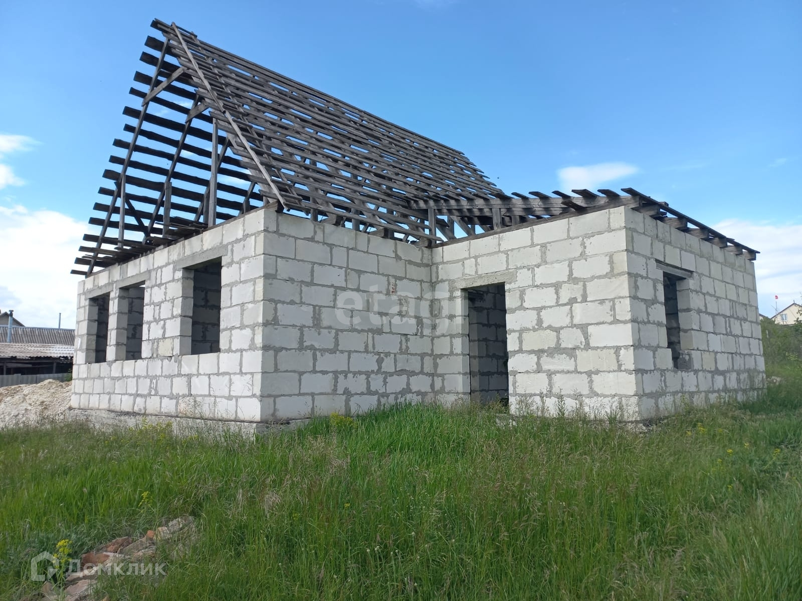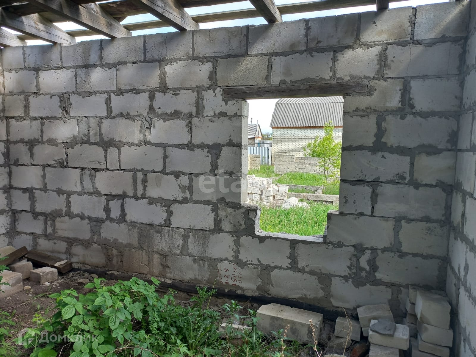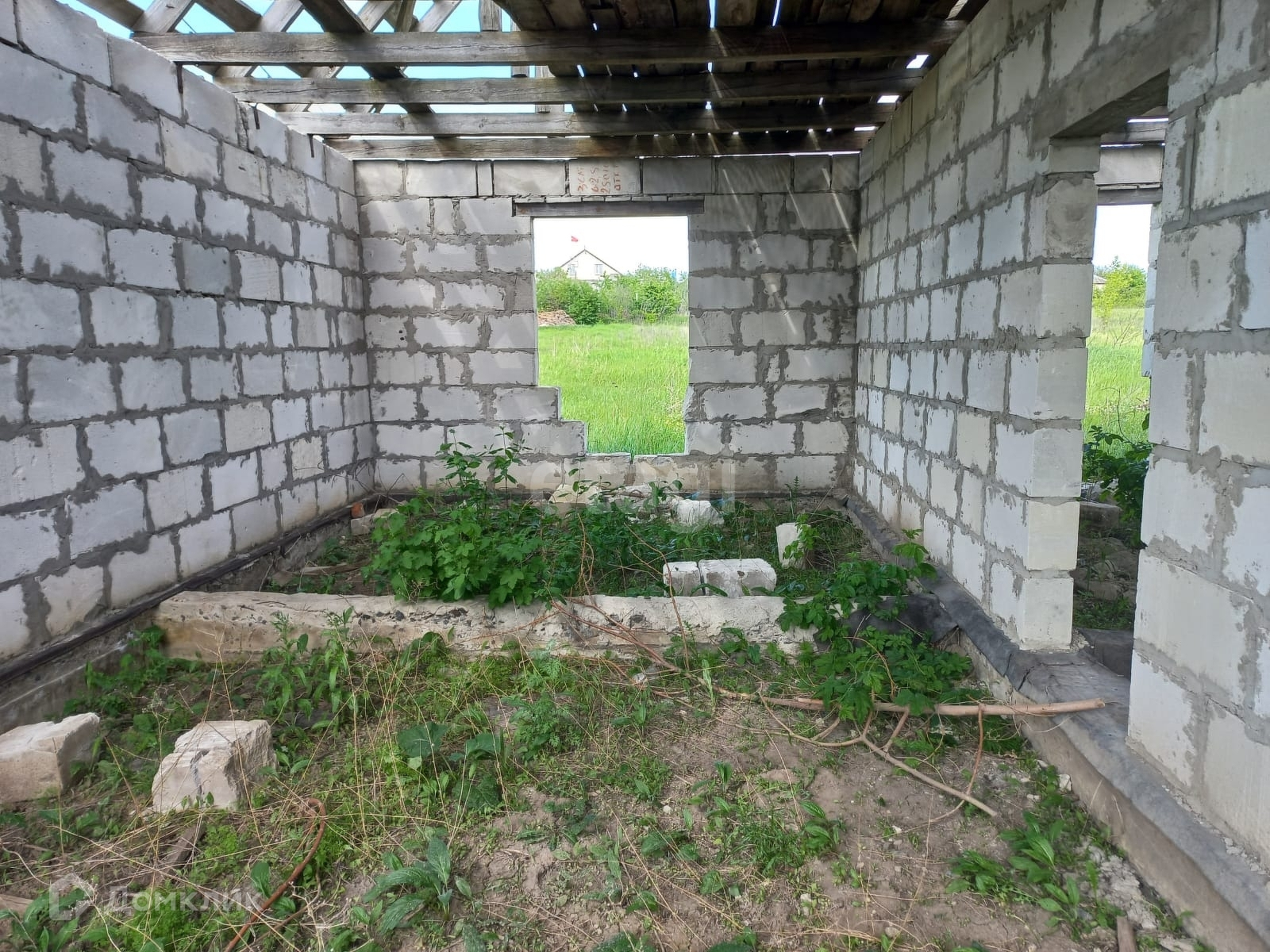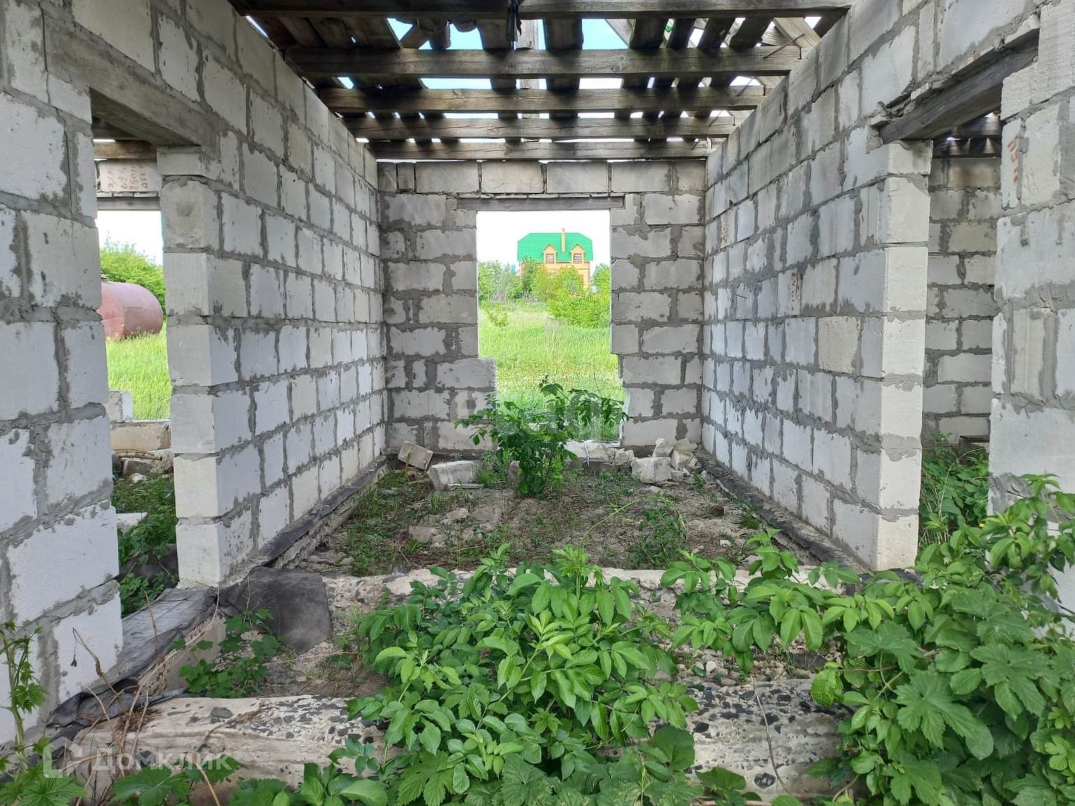На участке расположен объект незавершенного строительства общей площадью 91,6 кв.м. Материал стен – газосиликатный блок, каркас .