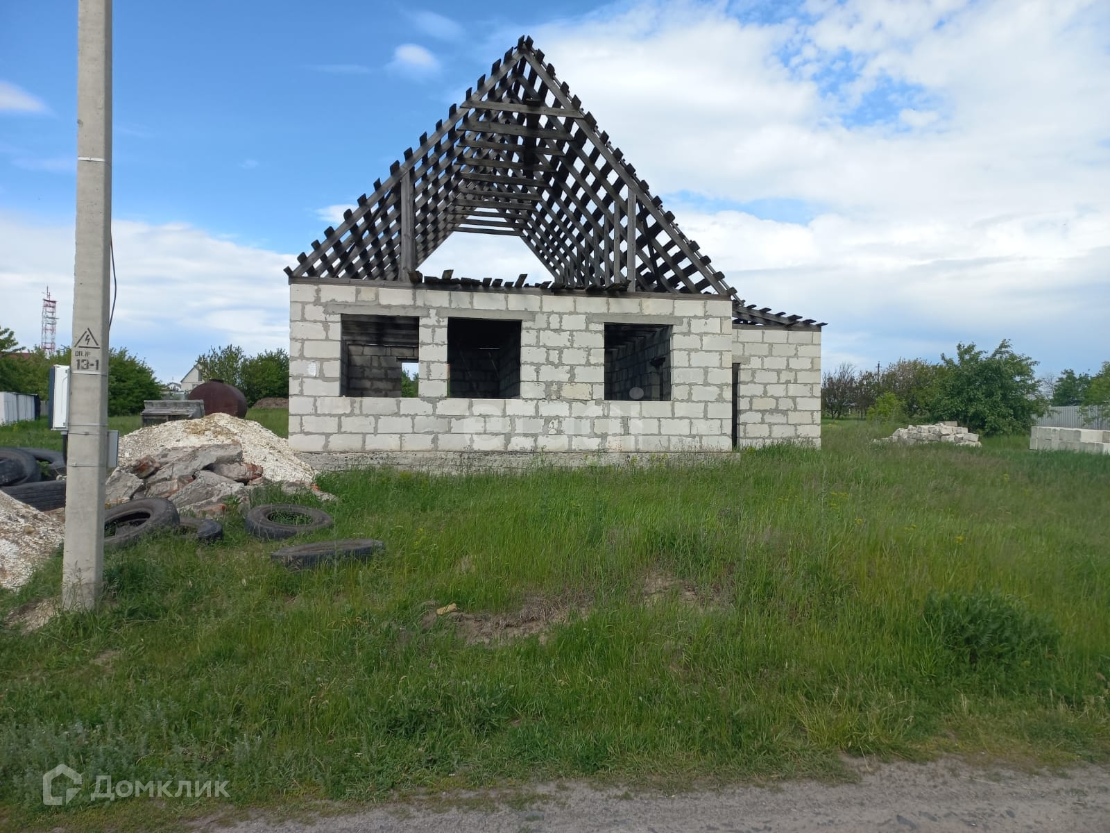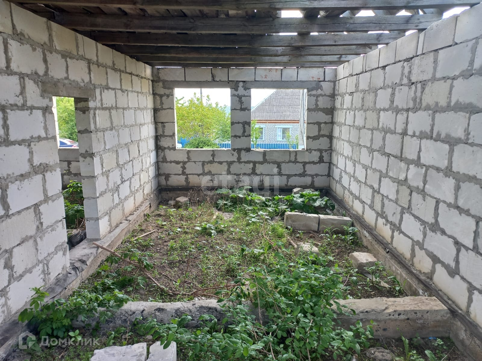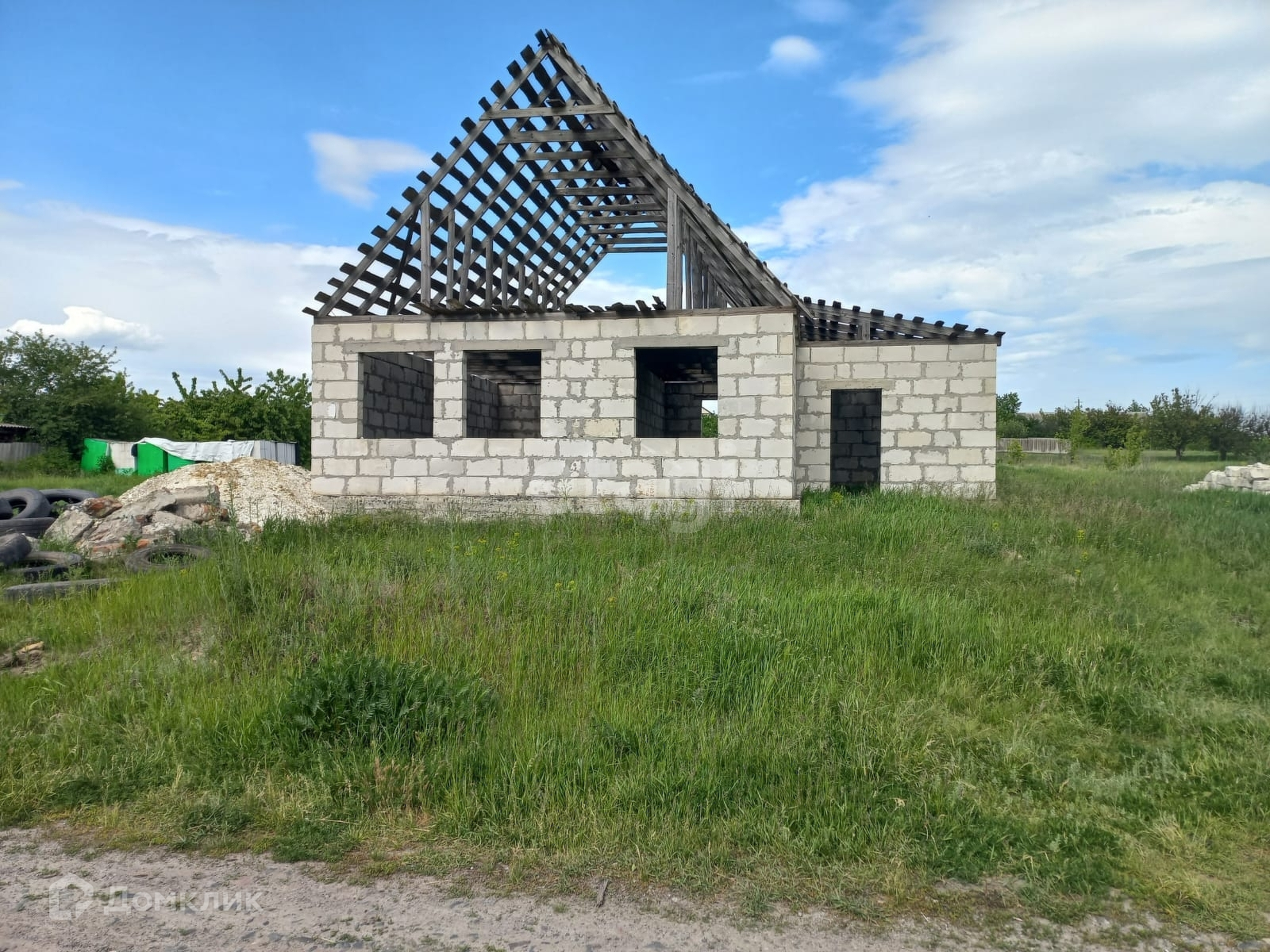 На участке расположен объект незавершенного строительства общей площадью 91,6 кв.м. Материал стен – газосиликатный блок, каркас .