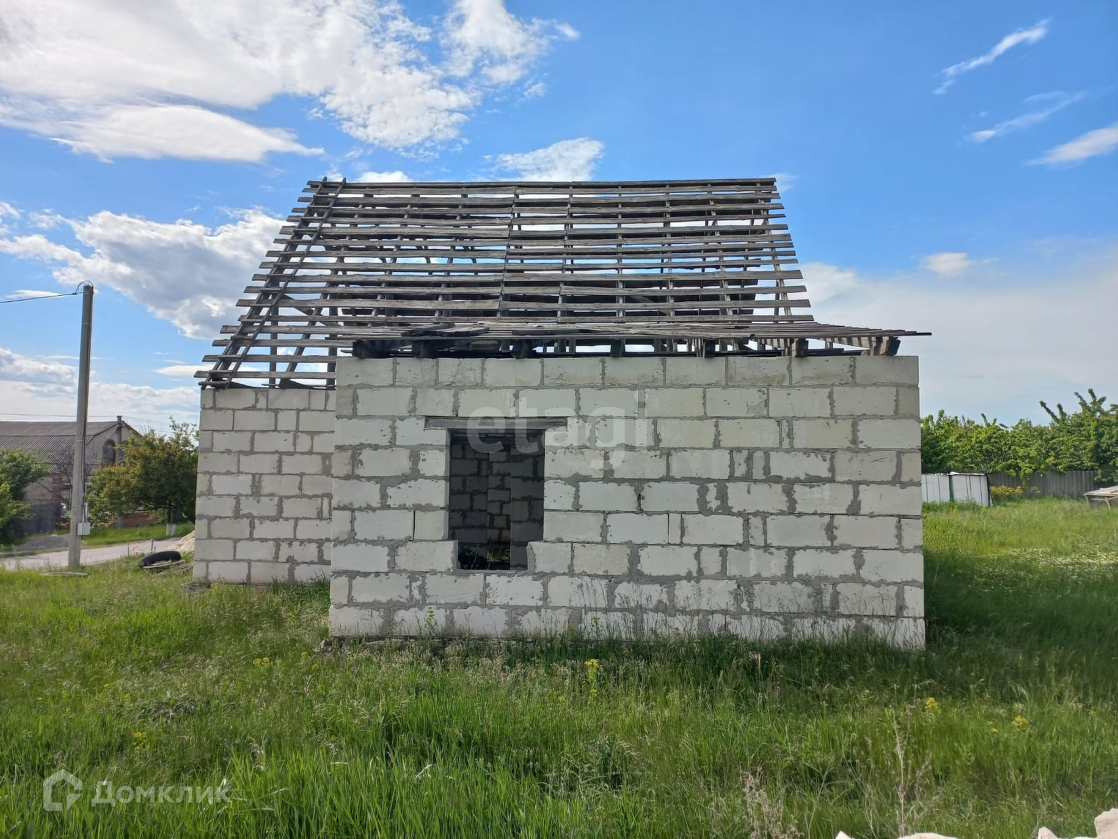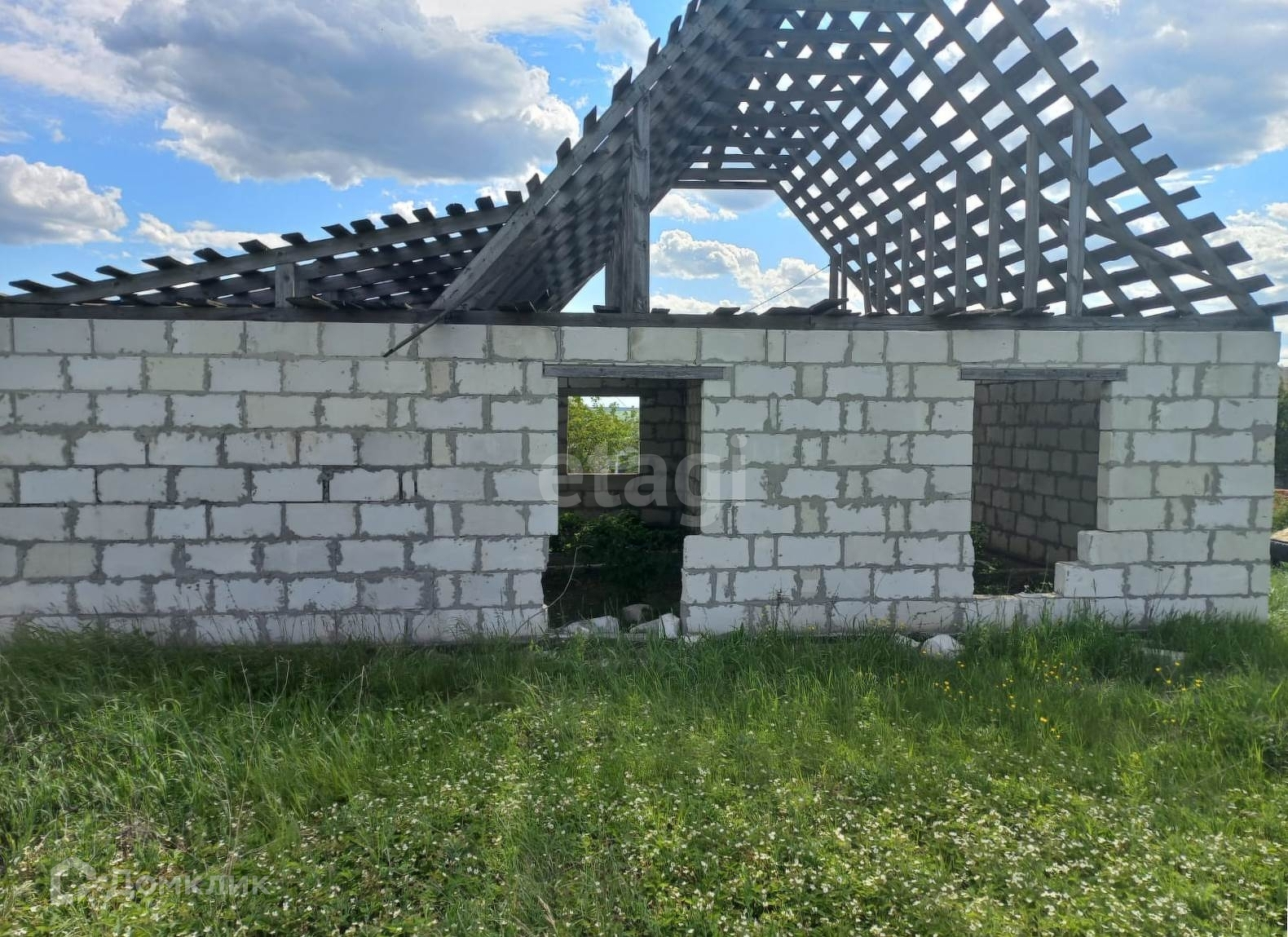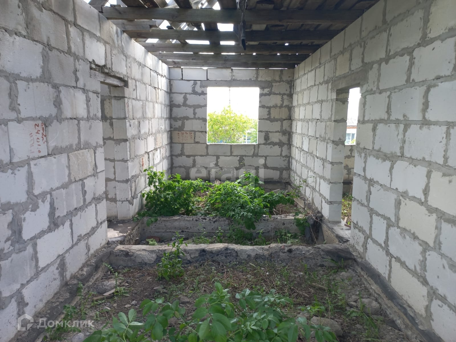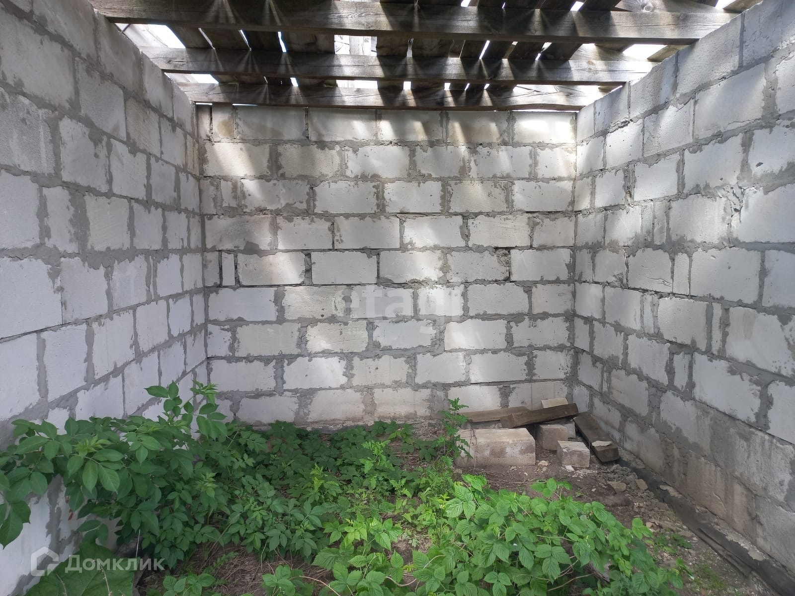 На участке расположен объект незавершенного строительства общей площадью 91,6 кв.м. Материал стен – газосиликатный блок, каркас .
