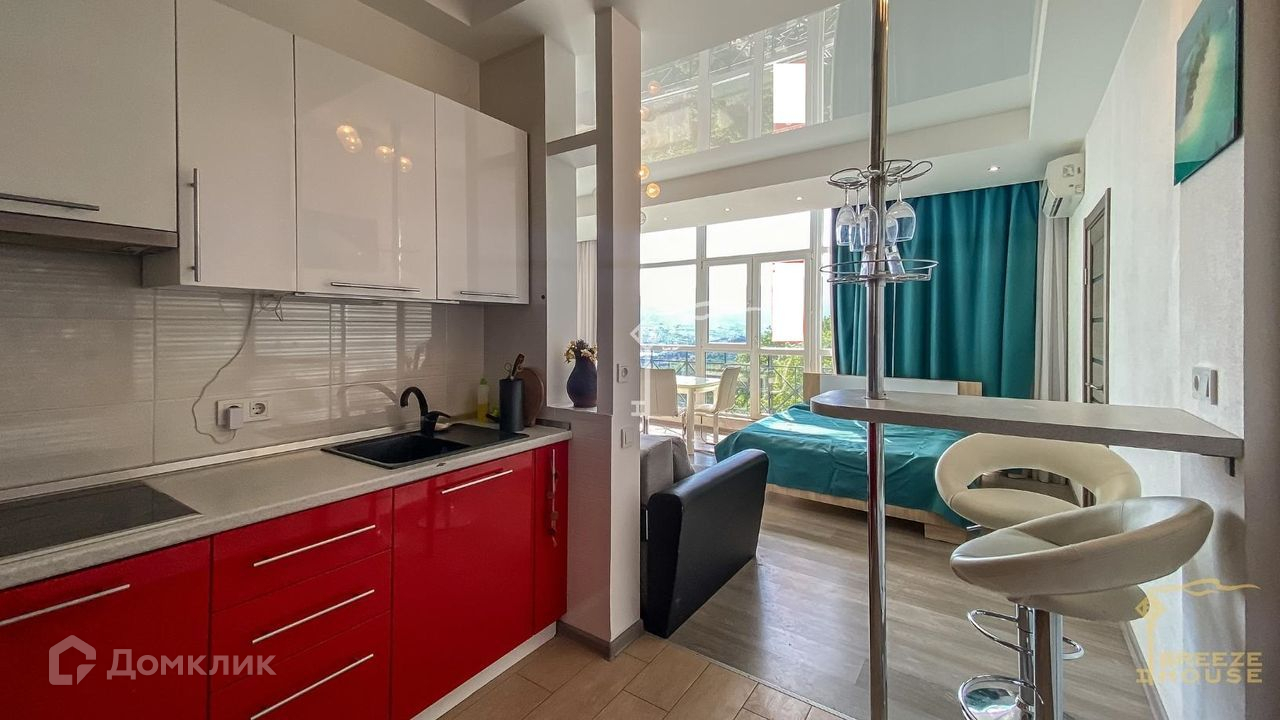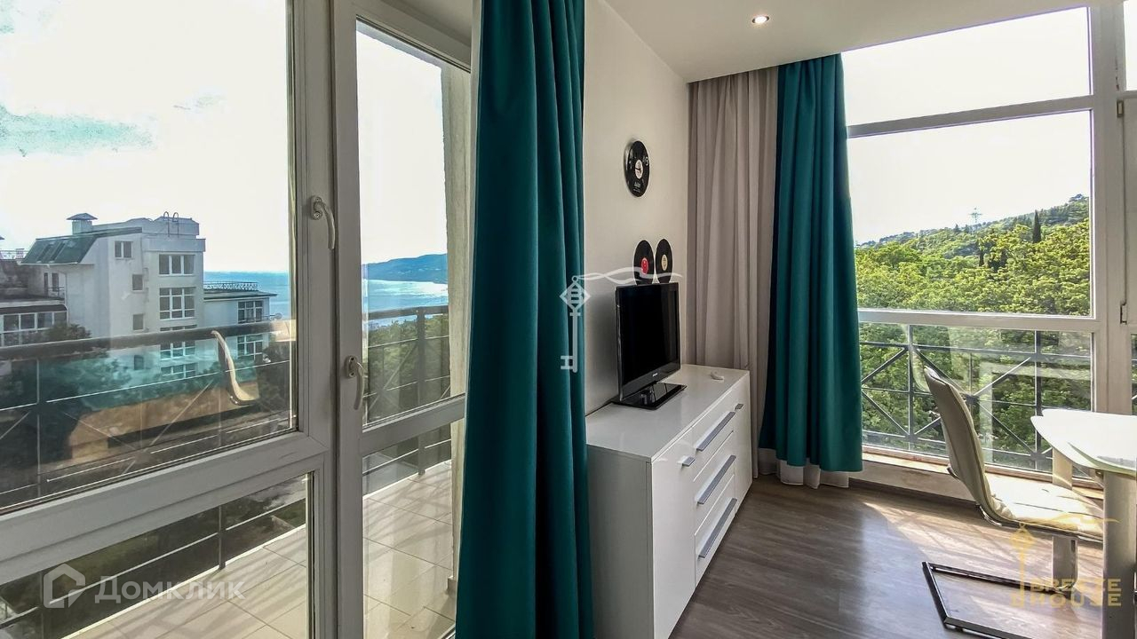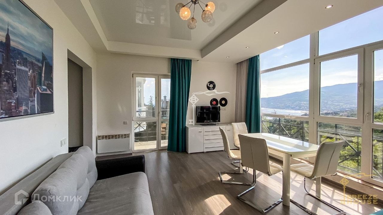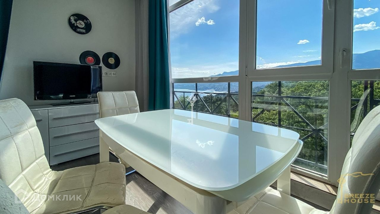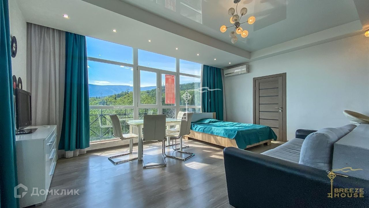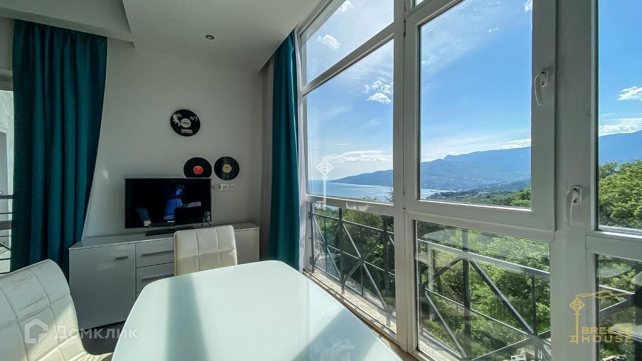 Предлагаются к продаже видовые апартаменты-студия с балконом, свежим дизайнерским ремонтом и панорамными окнами вблизи Ялты.