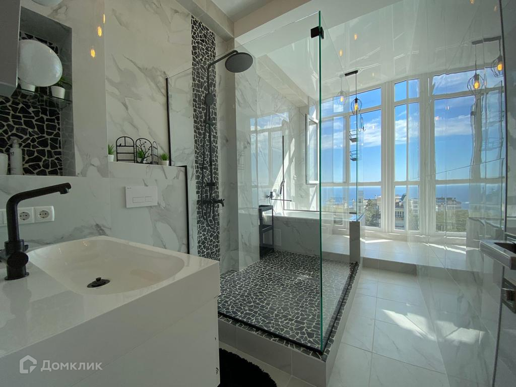 Продаются апартаменты в пгт. Восход общей площадью 70 м². Расположены на 4 этаже 10 этажного жилого комплекса. Апартаменты с современным ремонтом, полностью укомплектованы качественной мебелью и необходимой бытовой техникой. Установлены панорамные окна, наполненные южным солнечным светом, которые дают возможность наслаждаться шикарными видовыми характеристиками: море, горы и Ялта. В апартаментах 2 санузла: один гостевой, во втором сделана СПА- зона с ванной и тропическим душем.