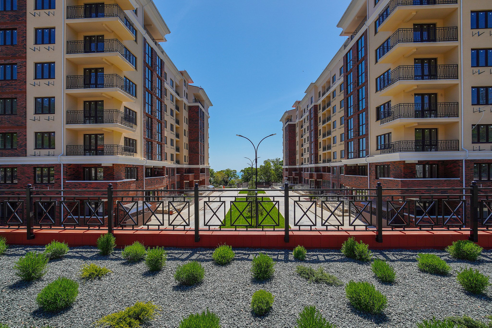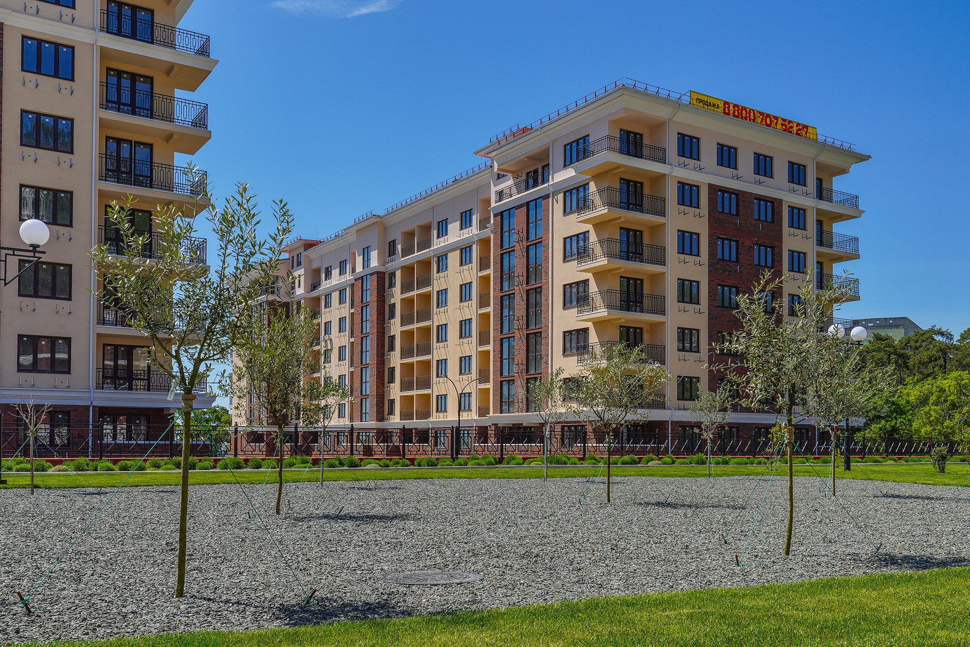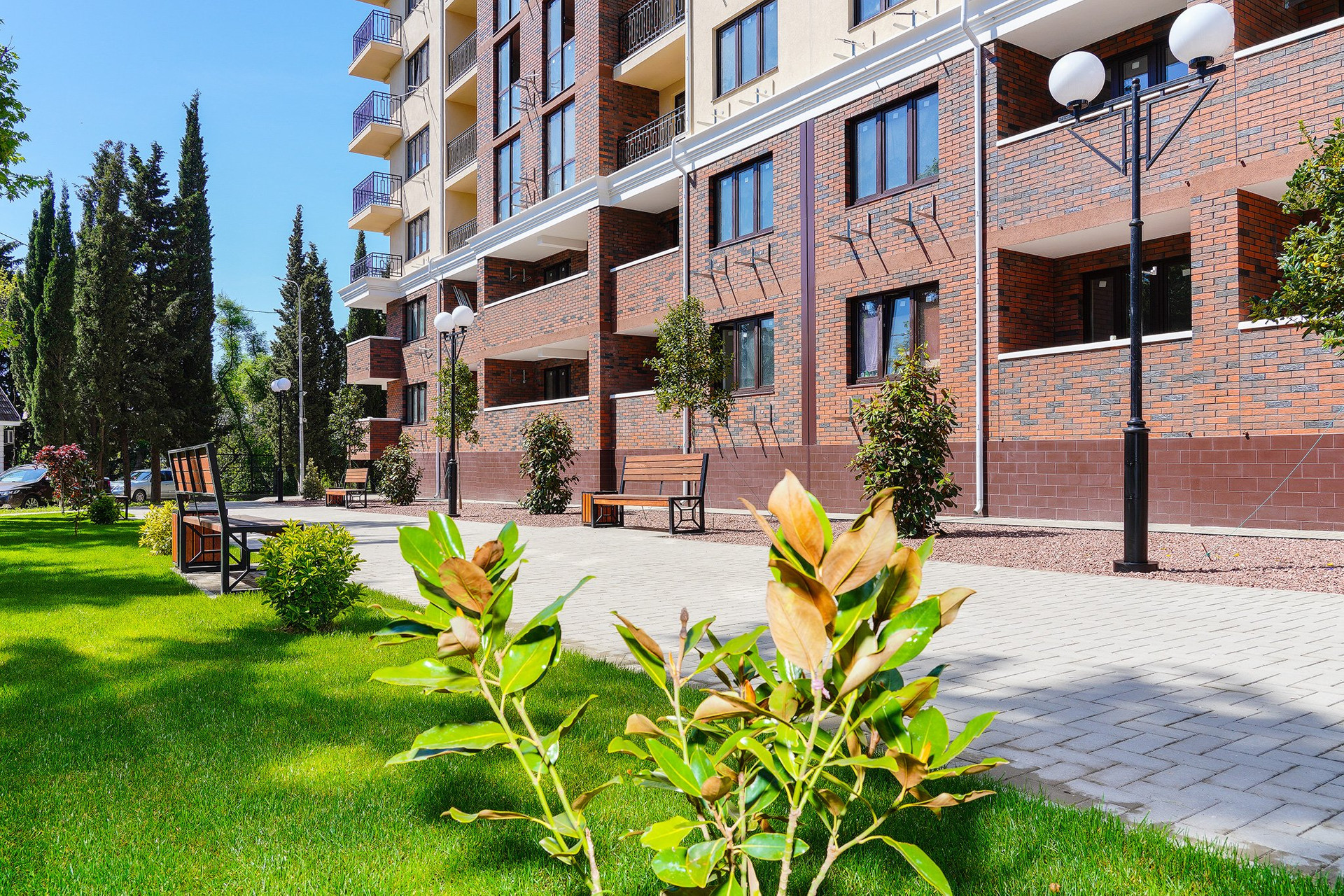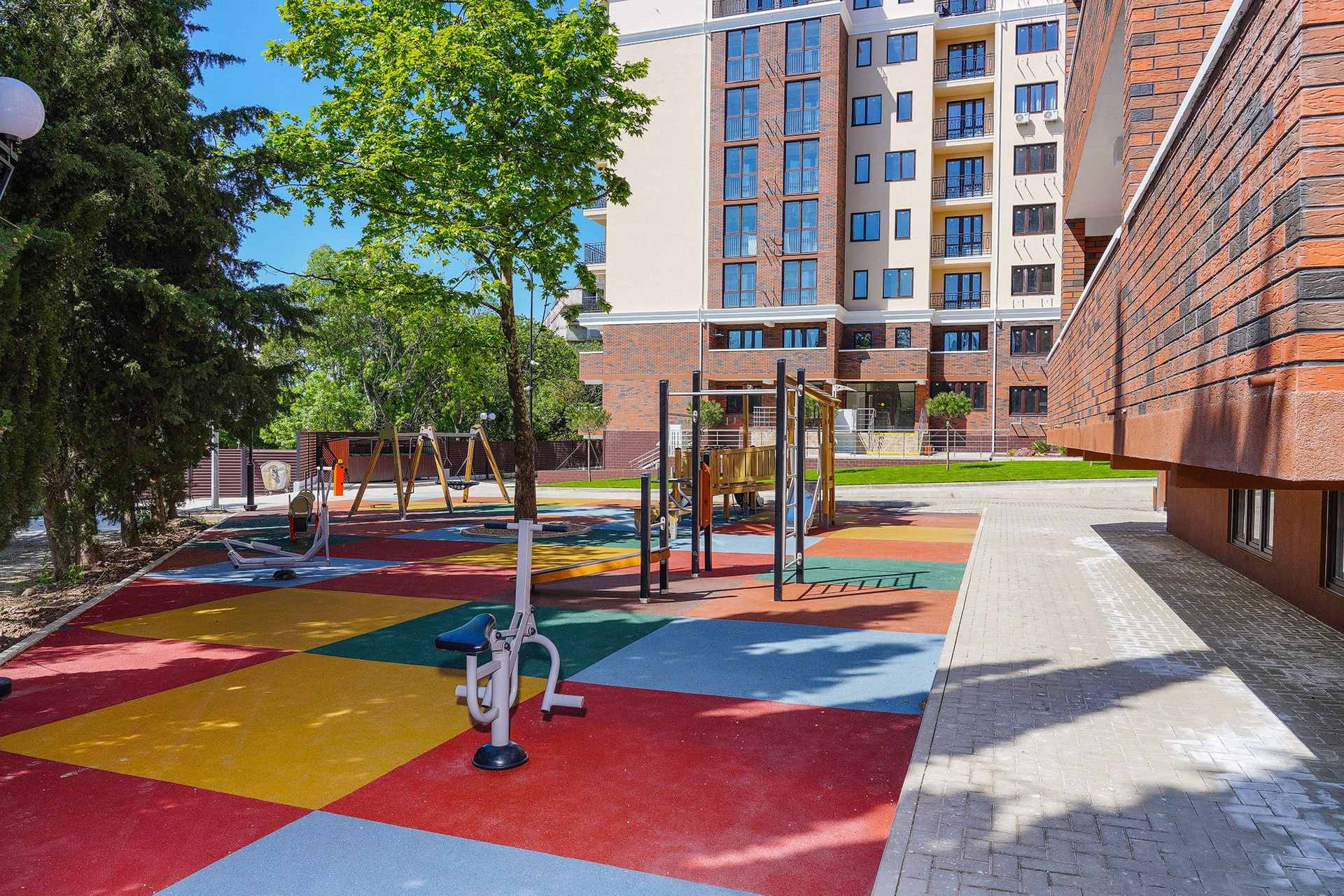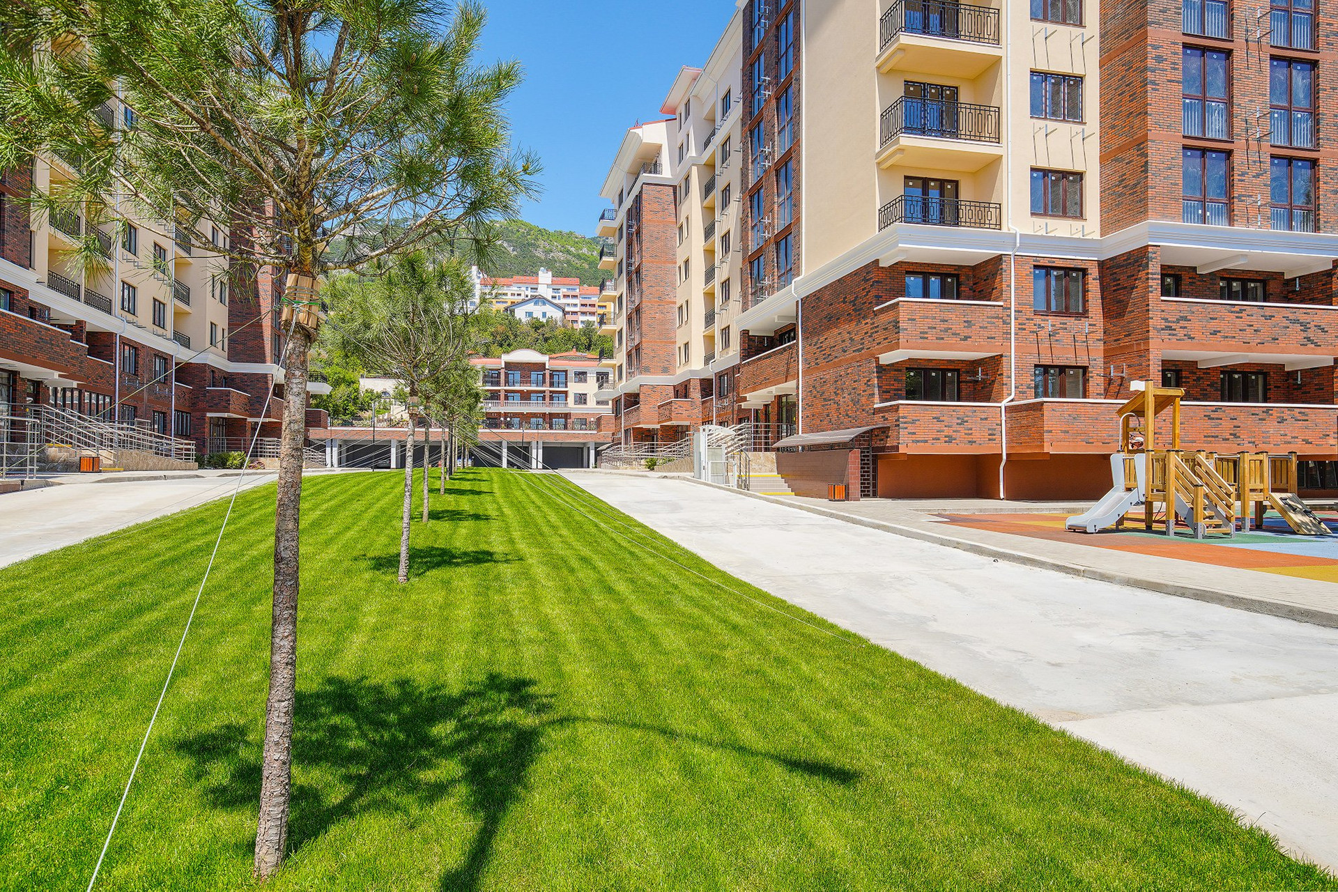 - Развитая инфраструктура с детскими и спортивными площадками, парковыми зонами, паркингом для жителей и отдельным гостевым паркингом