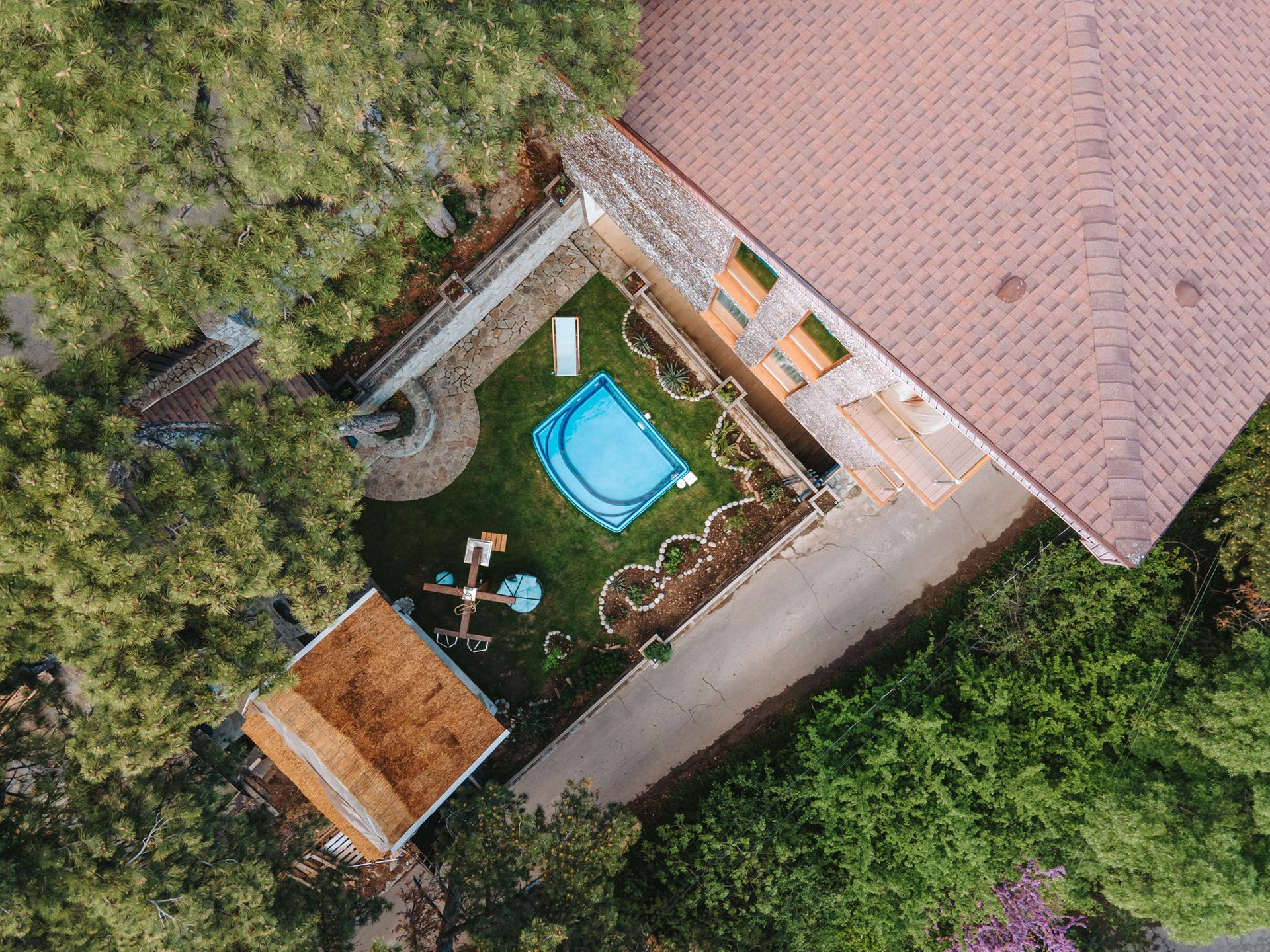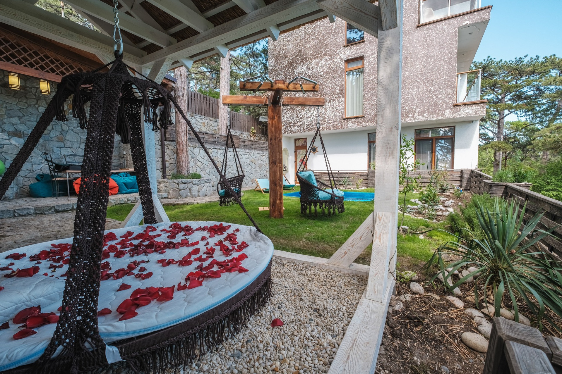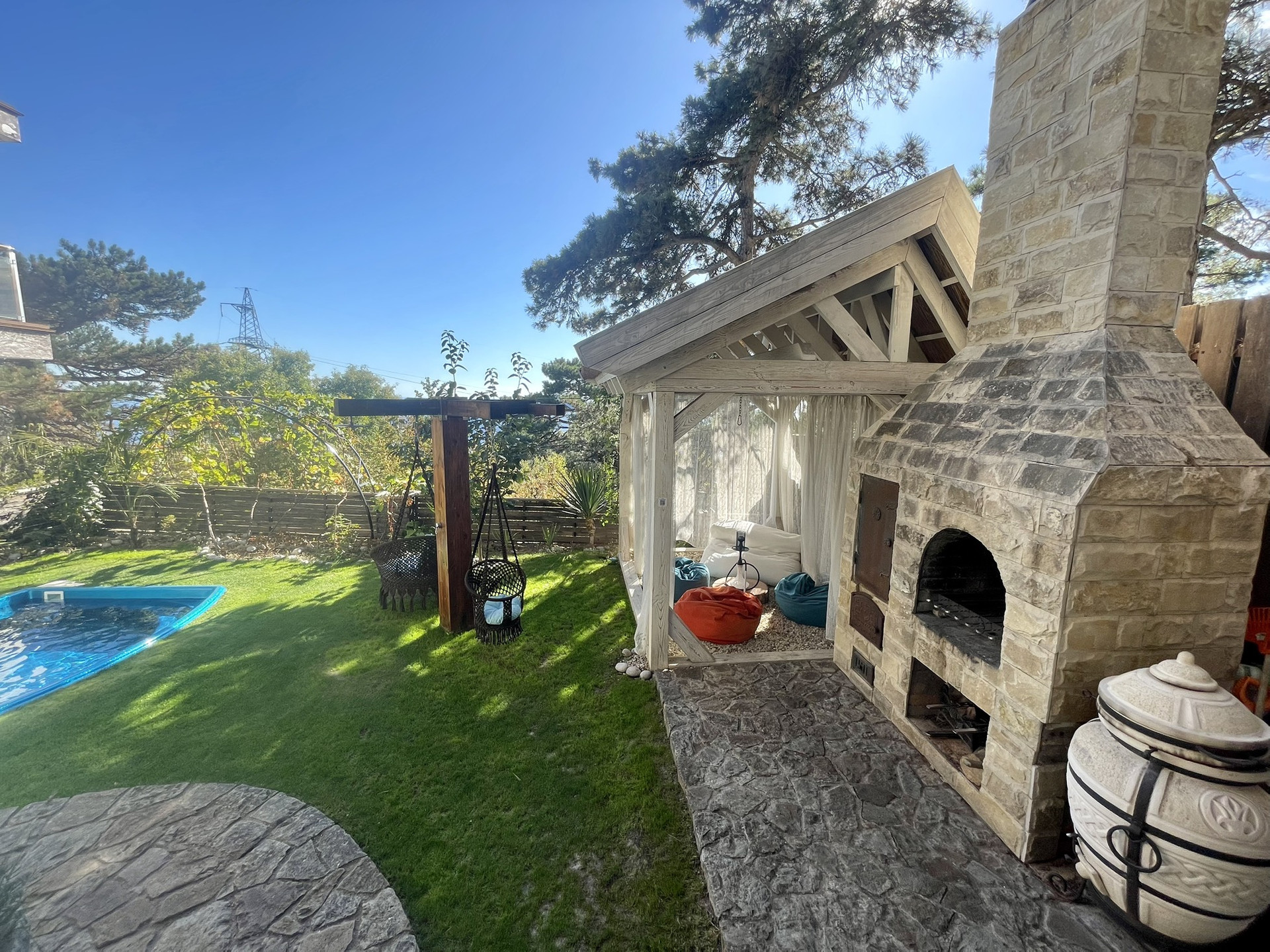 Во дворе бассейн с подогревом.