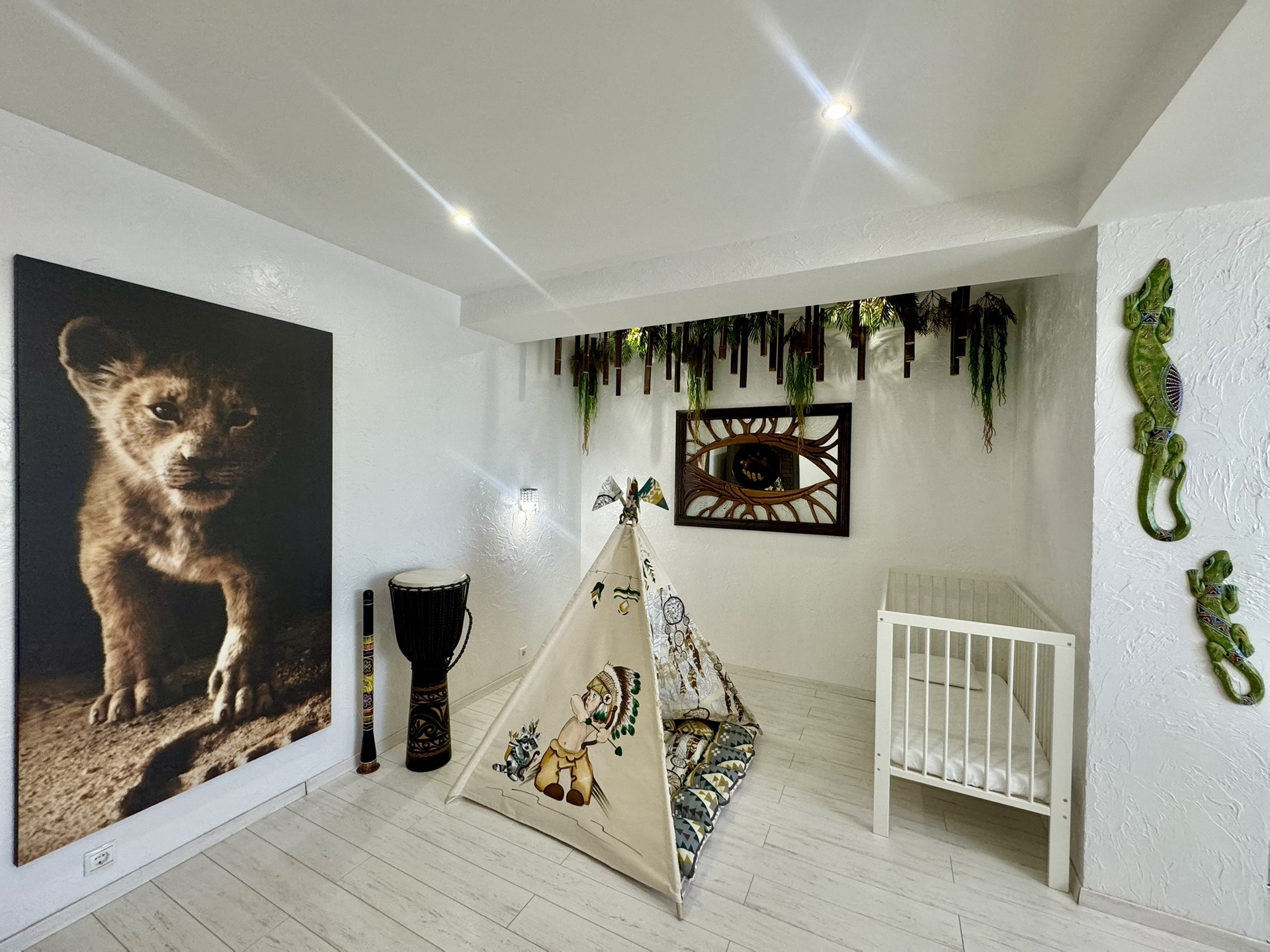 Второй этаж-две дизайнерские спальни в Африканском и Индонезийском стиле, санузел (туалет/ванна джакузи).
