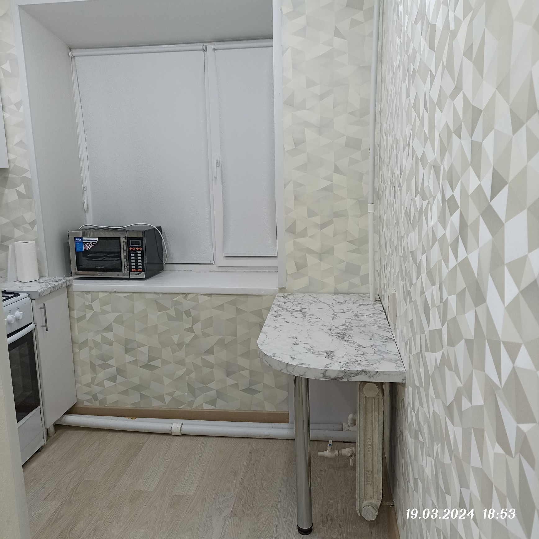 Продается однокомная квартира в центре поселка. Сделан качественный ремонт: заменена вся проводка, на полу ламинат, все потолки натяжные, окна пластиковые, дверь входная металлическая. Квартира очень теплая, светлая, удобная, не угловая. Остается новая кухня обязательно. В ванной вся мебель новая, есть выводы для стиральной машины, гигиенический душ установлен. Счетчик на воду стоит. Кварплата не большая. Во дворе детская площадка. Магазин, больница, аптека, школа, жд вокзал - все рядом.