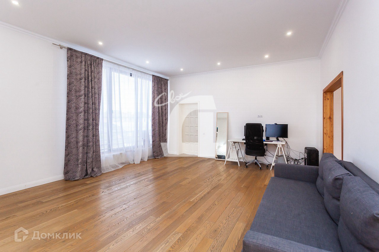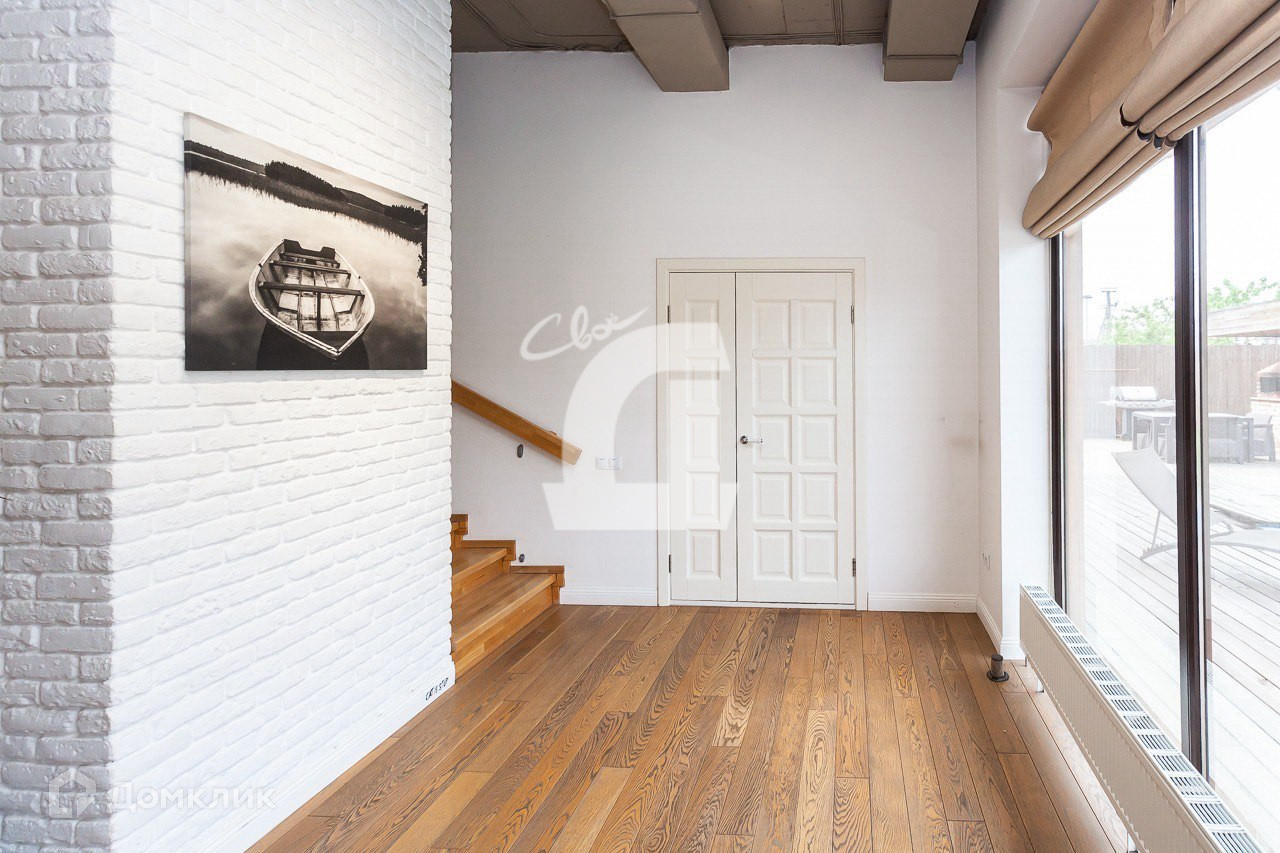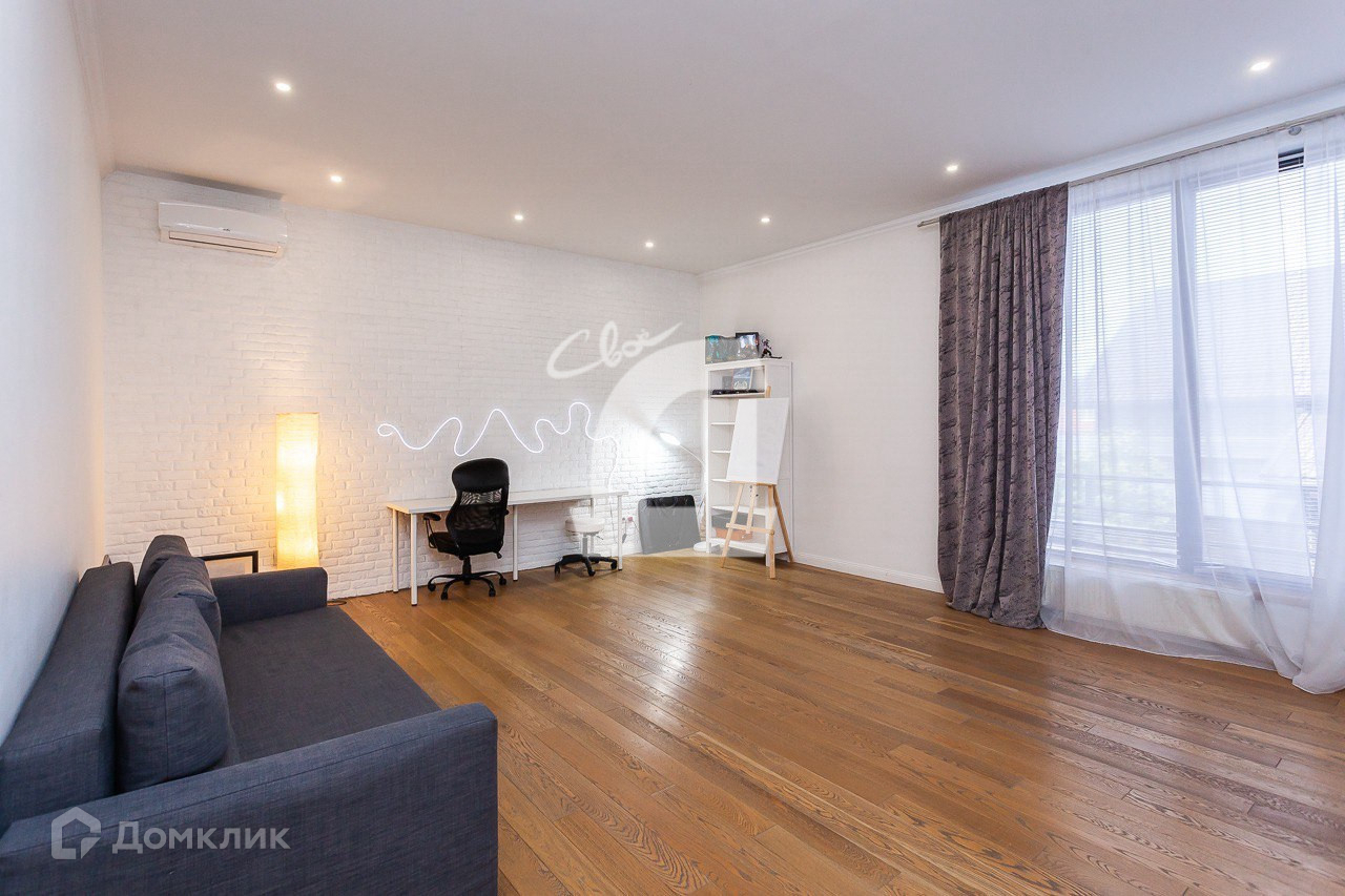 - при входе в дом расположена просторная кухня-гостиная 75кв.м. с высотой потолка 4м. с витражным остеклением и видом в красивый двор с террасой и бассейном, дорогой и качественной мебелью и техникой