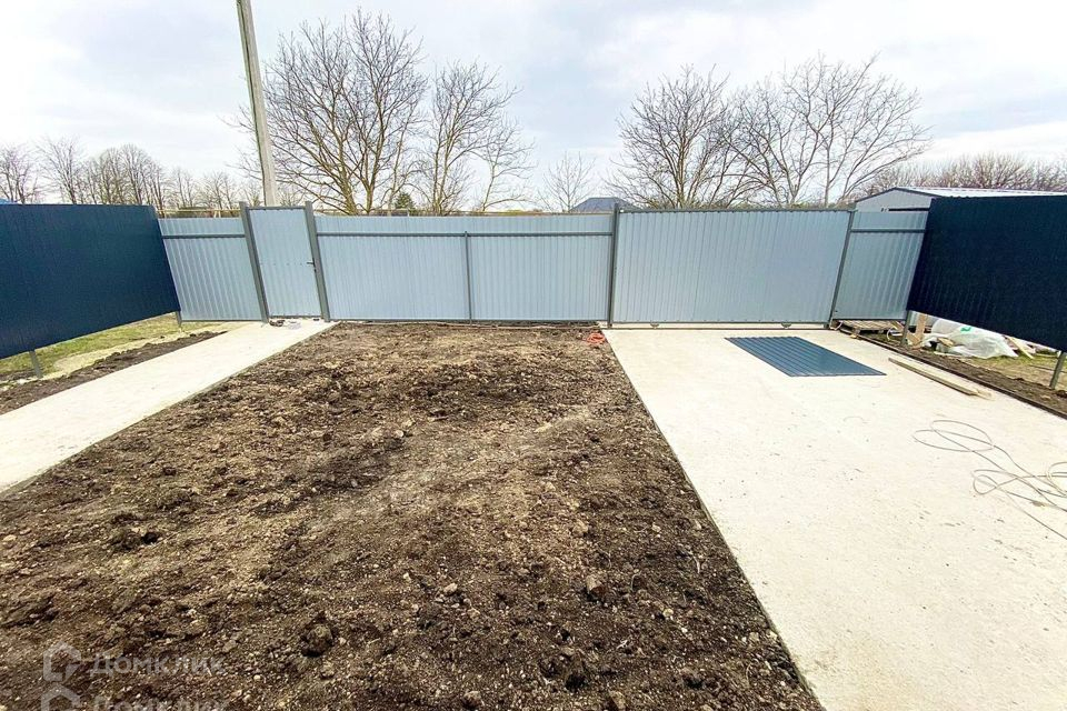 Двор забетонирован под 2 машины. Территория огорожена, участок отсыпан чрноземом.
