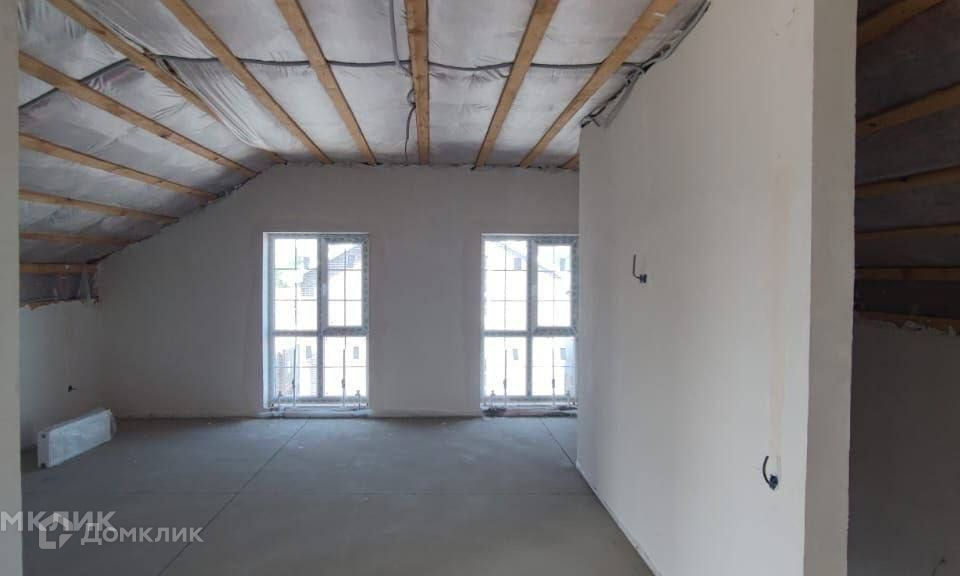 На первом этаже расположены гардиробная, просторный санузел, комната и кухня - гостиная с панорамным окном и выходом на задний двор. Высота потолков 3м, комнаты просторные и светлые. На втором этаже 3 спальни, гардероб и санузел. Есть возможность сделать 3й мансардный этаж, с высотой потолков 2,8.