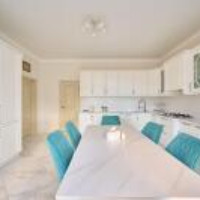 посудомойка с функцией открывания после мойки, встроенный духовой шкаф и микроволновая печь с сенсорным управлением,холодильник большой и вместительный с множеством функций, газовая варочная панель и вытяжка