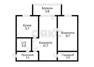 Общая площадь: 57.5 м2